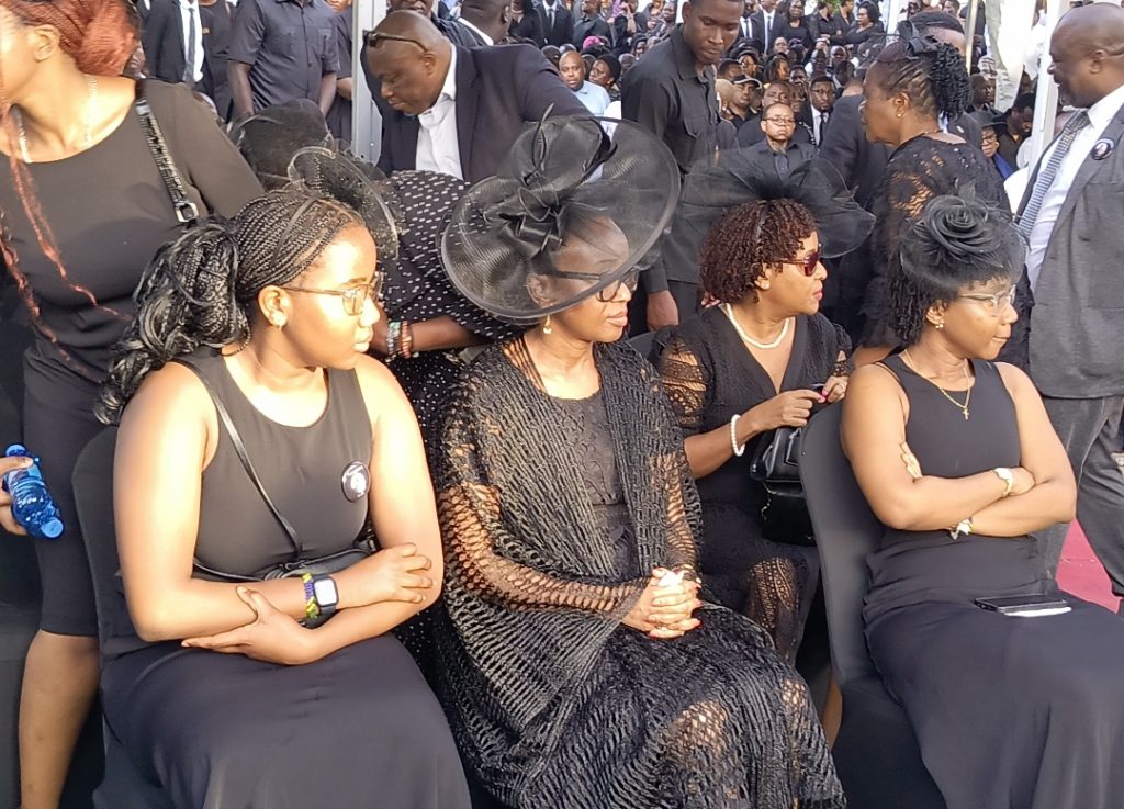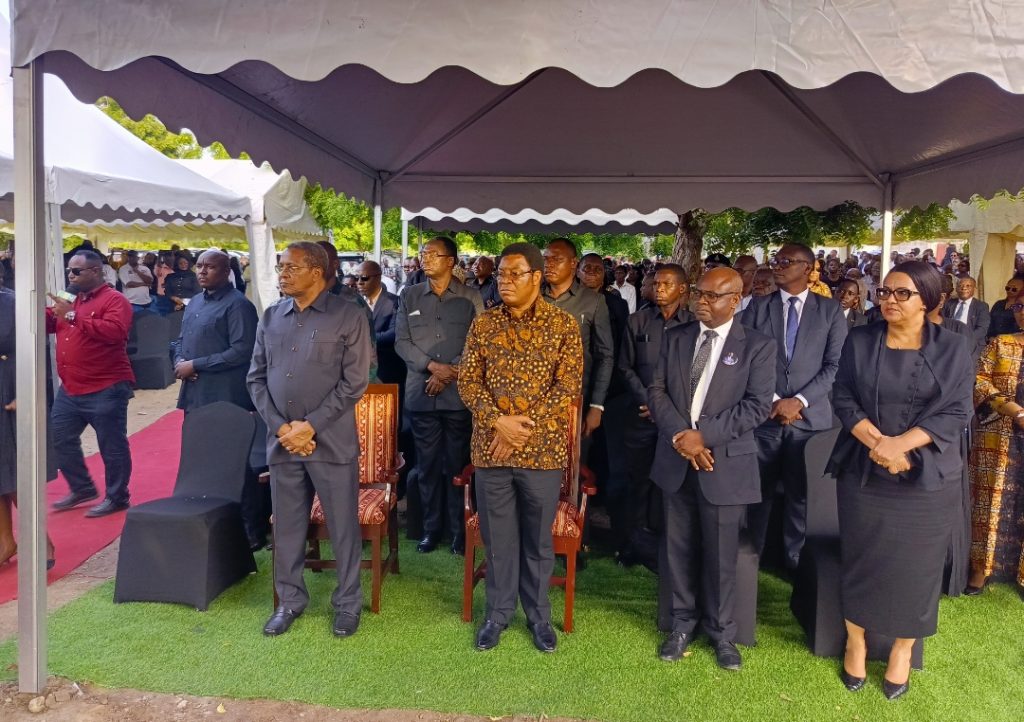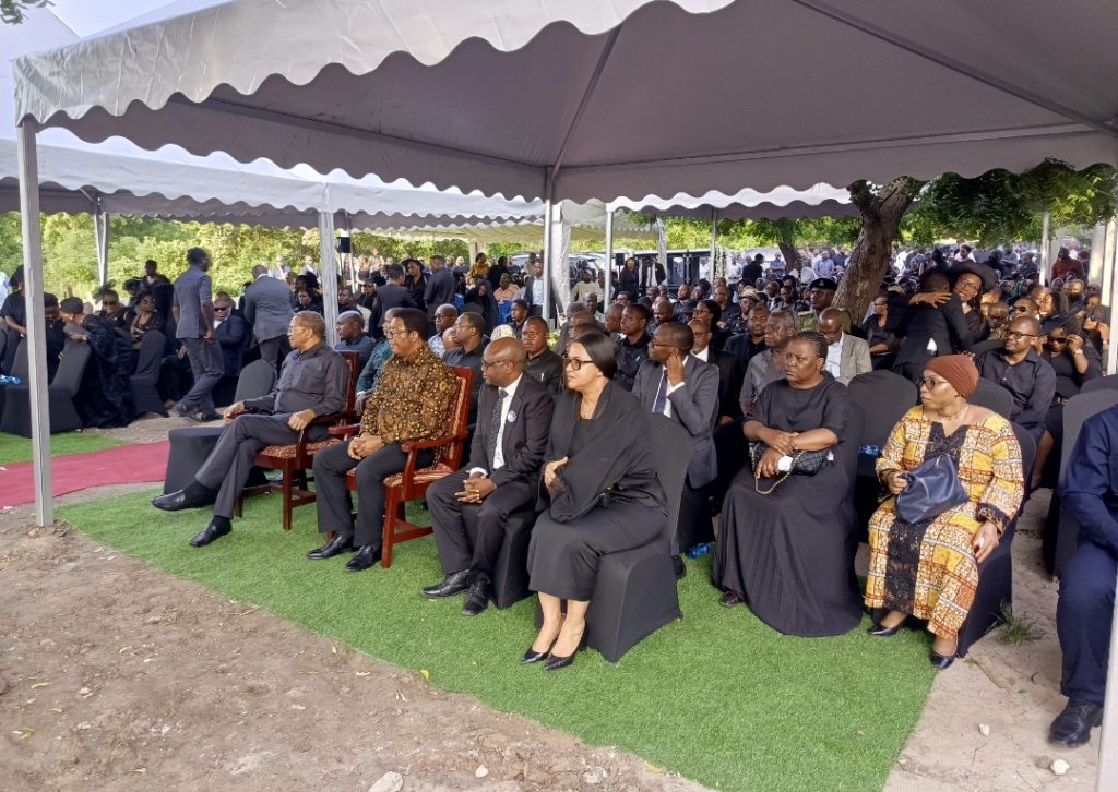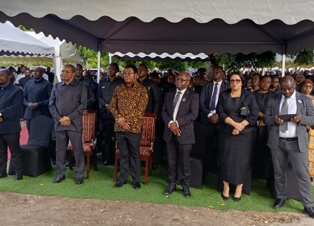 Waziri Mkuu wa Jamhuri ya Muungano wa Tanzania Mh. Kassim Majaliwa na Rais Mstaafu wa Jamhuri ya Muungano wa Tanzania awamu ya nne Dkt. Jakaya Kikwete mawaziri, pamoja na viongozi mbalimbali wakiwa katika mazishi hayo.