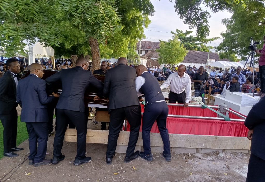 Mazishi yamefanyika kwa heshima kubwa, yakifuatana na maombi maalum kwa mujibu wa taratibu za kidini. Wakati wa shughuli hizo, hotuba mbalimbali za kumbukumbu zilitolewa na watu waliomfahamu marehemu, wakimtaja kuwa kiongozi aliyekuwa na maono na mchango mkubwa kwa taifa.