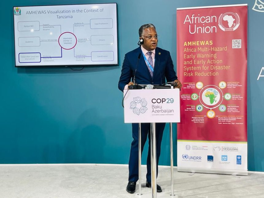 Katibu Mkuu Ofisi ya Waziri Mkuu anayeshughulikia masuala ya Sera, Bunge na Uratibu Dkt. Jim Yonazi ameyasema hayo 13 Novemba, 2024 wakati wa Mkutano wa 29 wa nchi Wanachama wa Mkataba wa Umoja wa Mataifa kuhusu Mabadiliko ya Tabianchi (COP-29) unaoendelea mjini Baku, nchini Azerbaijan.