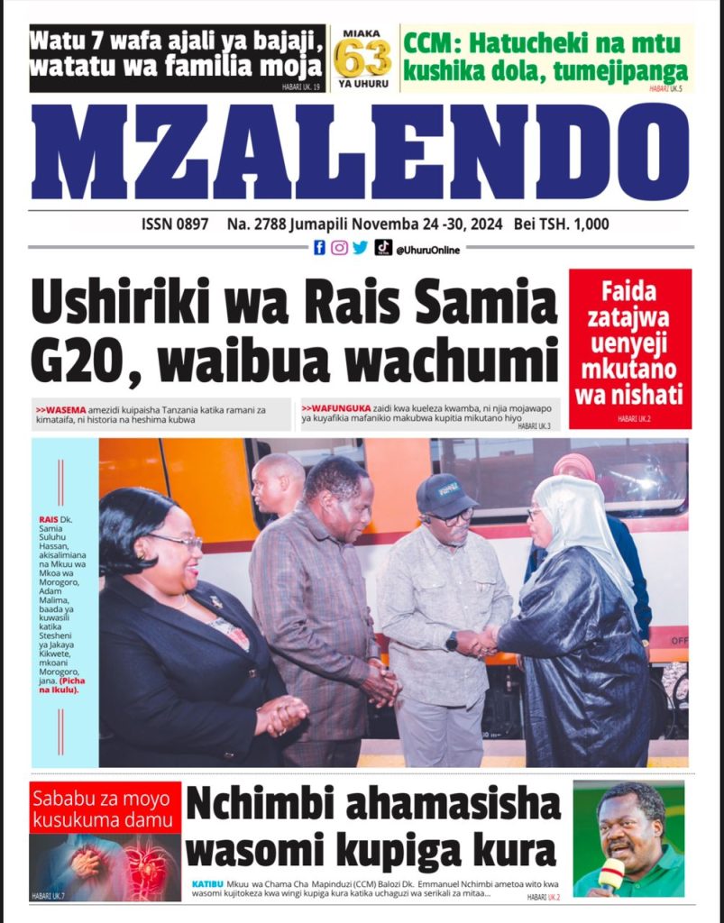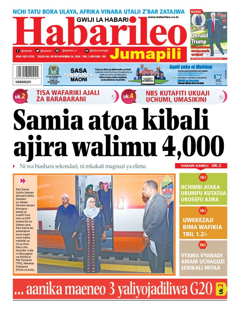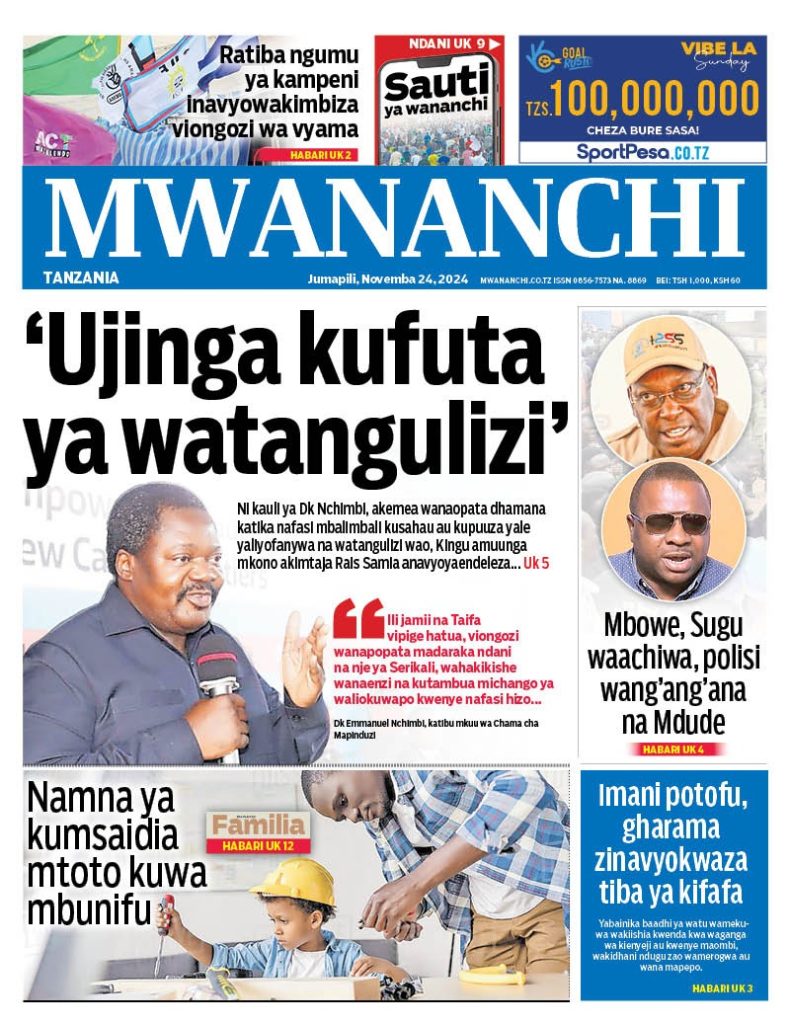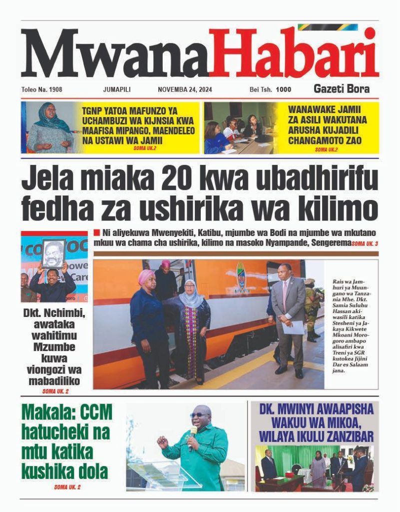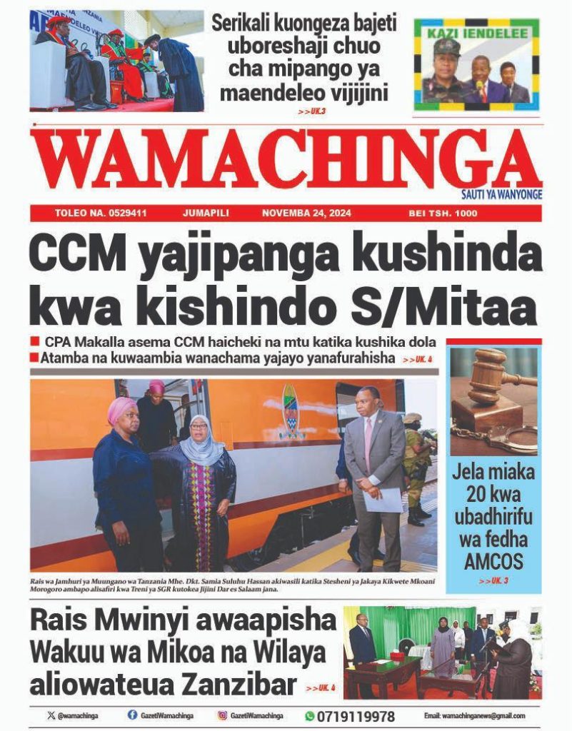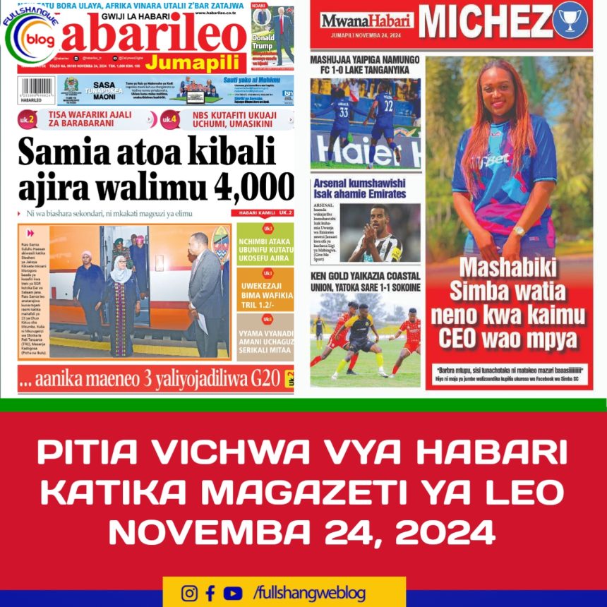 MagazetiPITIA VICHWA VYA HABARI KATIKA MAGAZETI YA LEO NOVEMBA 24, 2024 Last updated: 2024/11/23 at 8:55 PM John Bukuku 12 months ago Share SHARE John Bukuku November 23, 2024 November 23, 2024 Share this Article Facebook Twitter Email Print Previous Article TAWA YAIDHIBITI NCAA MASHINDANO YA SHIMMUTA TANGA Next Article KAPINGA AENDELEA NA MCHAKAMCHAKA KUHAMASISHA WANANCHI KUSHIRIKI UCHAGUZI WA SERIKALI ZA MITAA.