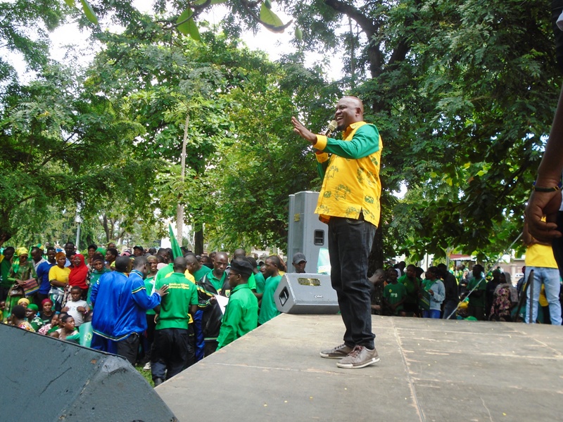 Mwenyekiti wa CCM Wilaya ya Nyamagana, akizungumza na wana CCM wakiwemo wananchi wa wilaya leo, katika mkutano wa kuwapongeza wenyeviti na wajumbe wa serikali za mitaa kwa ushindi.
