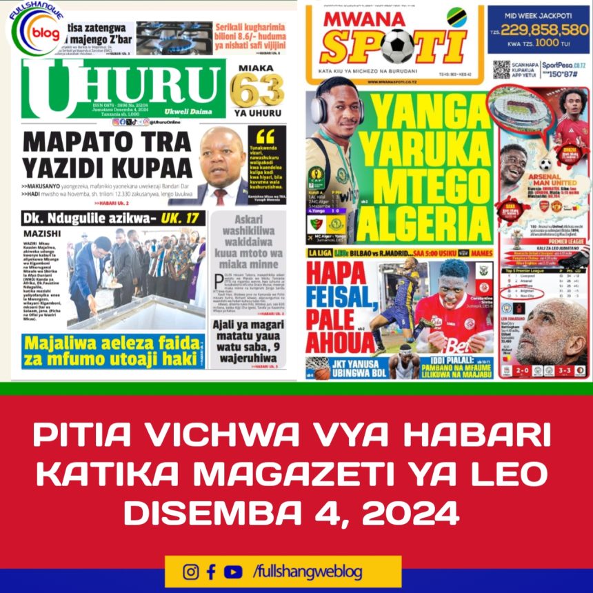 MagazetiPITIA VICHWA VYA HABARI KATIKA MAGAZETI YA LEO DISEMBA 4, 2024 Last updated: 2024/12/04 at 1:14 AM John Bukuku 11 months ago Share SHARE John Bukuku December 4, 2024 December 4, 2024 Share this Article Facebook Twitter Email Print Previous Article WAZIRI JAFO ATAKA WAWEKEZAJI KUONGEZA WIGO WA UWEKEZAJI NCHINI Next Article KUMBE HATA NDOTO MBAYA ZINA TINA YAKE YA UHAKIKA