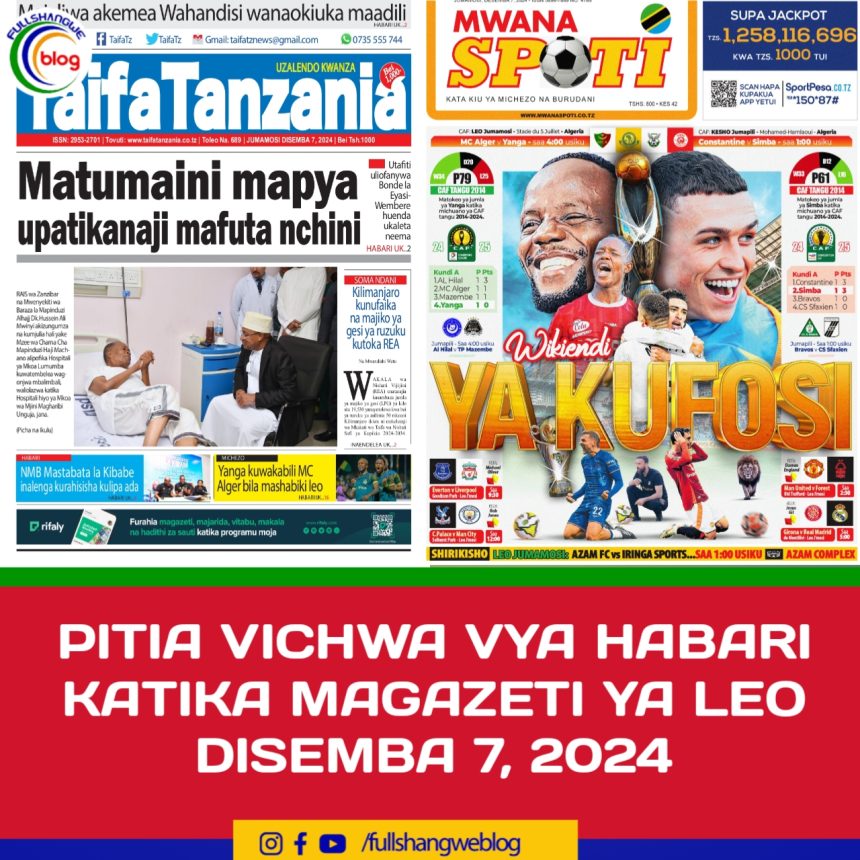 MagazetiPITIA VICHWA VYA HABARI KATIKA MAGAZETI YA LEO DISEMBA 7, 2024 Last updated: 2024/12/06 at 9:44 PM John Bukuku 11 months ago Share SHARE John Bukuku December 6, 2024 December 6, 2024 Share this Article Facebook Twitter Email Print Previous Article NENDENI MKALETE MAPINDUZI KWA KUSHUGHULIKIA MREJESHO KATIKA OFISI ZA UMMA-BI. LEILA MAVIKA Next Article WAGONJWA 2,442 WAPATIWA HUDUMA NA MADAKTARI BINGWA WA SAMIA