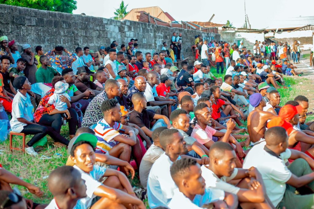 Mashabiki wa soka wakifuatilia mechi ya uzinduzi kati ya Juventus FC na Don Bosco ya mashindano ya Samia Supa Cup Msasani yaliyaondaliwa na Diwani Luca Neghest. Katika mchezo huo uliochezeshwa na mwamuzi Jackson Msilombo, Juventus FC ilishinda kwa mabao 2-1.