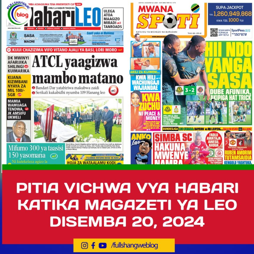 MagazetiPITIA VICHWA VYA HABARI KATIKA MAGAZETI YA LEO DISEMBA 20, 2024 Last updated: 2024/12/20 at 1:42 AM John Bukuku 11 months ago Share SHARE John Bukuku December 20, 2024 December 20, 2024 Share this Article Facebook Twitter Email Print Previous Article WAWILI MBARONI KWA TUHUMA ZA MAUAJI MWANZA Next Article UJENZI MRADI WA KUFUA UMEME WA BWAWA LA JULIUS NYERERE MBIONI KUKAMILIKA