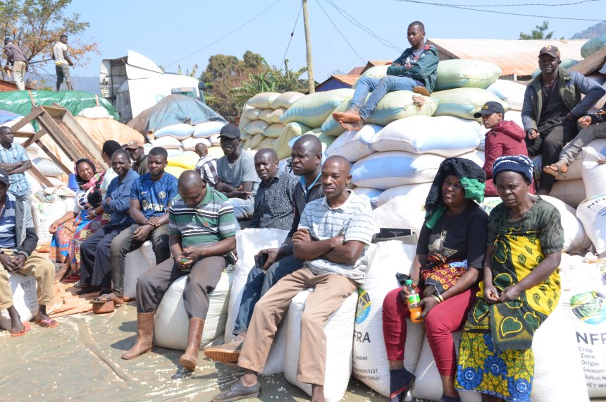 Baadhi ya wakulima wa mahindi katika kijiji cha Kigonsera wilaya y Mbinga,wakisubiri kupima mahindi kwenye kituo cha ununuzi cha Kigonsera.