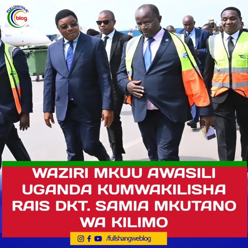 Waziri Mkuu, Kassim Majaliwa akiongozwa na Waziri wa Nchi anayeshugulikia Kilimo, Mifugo na Uvuvi wa Uganda, Fredrick Bwino Kyakulaga (wa pili kushoto) alipowasili kwenye uwanja wa Ndege wa Kimataifa wa Entebbe nchini Uganda Januari 10, 2025 ambako atamwakilisha Rais Dkt Samia Suluhu Hassan katika Mkutano kuhusu Mpango wa Kilimo Afrika utakaofanyika kwenye ukumbi wa hoteli ya Speke Resort anda Conference Centre Munyonyo Januari 11, 2025. (Picha na Ofisi ya Waziri Mkuu)