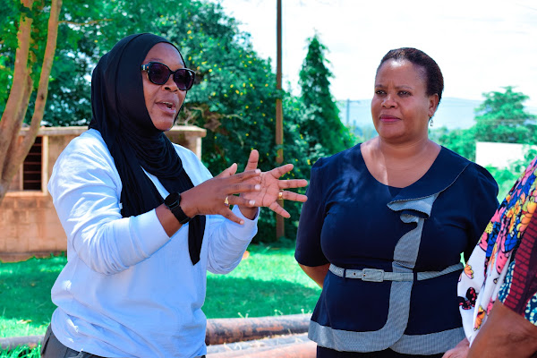 Mkuu wa Wilaya ya Kondoa Fatma Nyangasa akiwa ameongozana na watendaji wa Mamlaka ya Maji safi na usafi wa Mazingira pamoja na Ruwasa Kondoa alipotembelea ofisi mpya za Mamlaka ya Majisafi na Usafi wa Mazingira Kondoa .