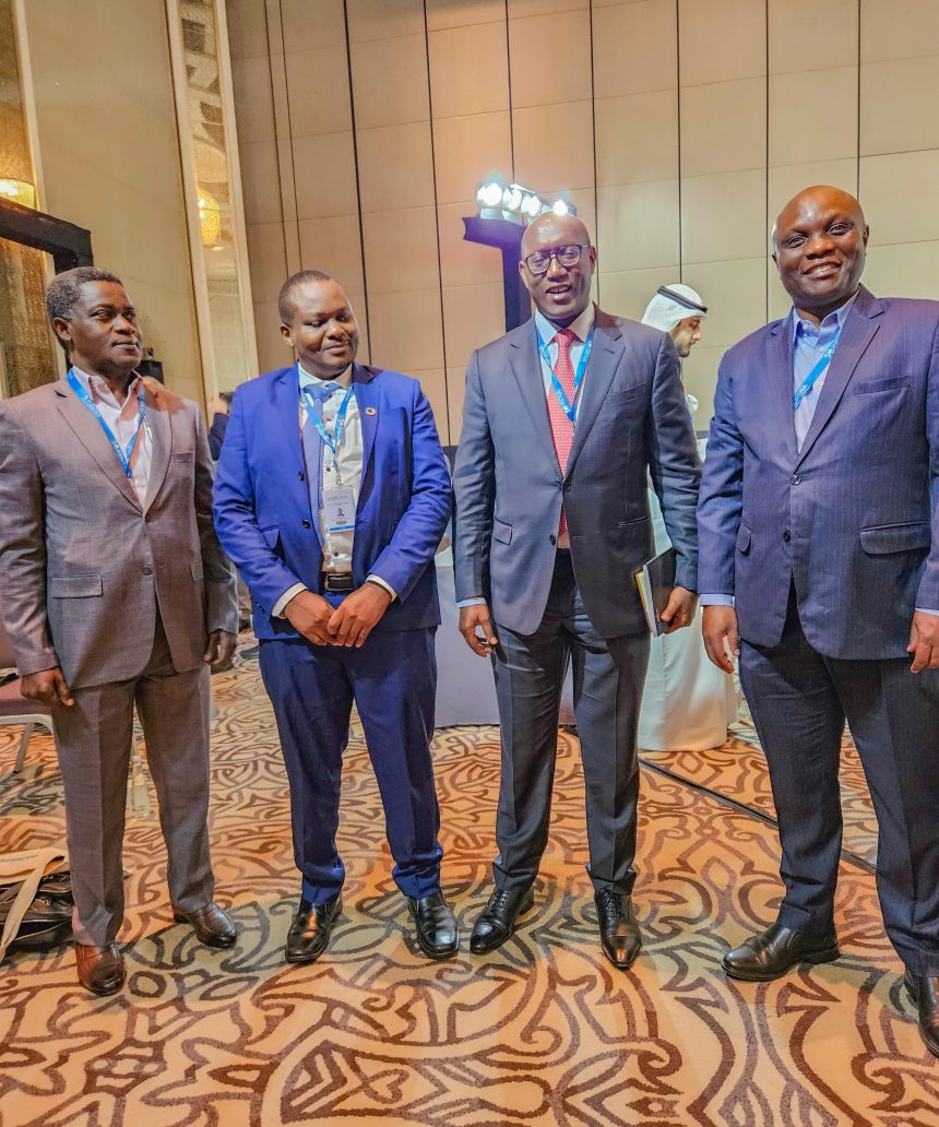Ujumbe wa Tanzania ukiongozwa na Naibu Katibu Mkuu Nishati Dkt Khatibu Kazungu ukiwa kwenye picha ya pamoja na Makamu wa rais benki ya Maendeleo ya Afrika AfDB Mara baada ya ufunguzi wa mkutano wa 15 wa baraza la IRENA Abu Dhabi