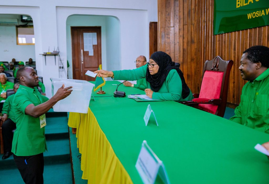 Mwenyekiti wa Chama Cha Mapinduzi na Rais wa Jamhuri ya Muungano wa Tanzania Mhe. Dkt. Samia Suluhu Hassan ameongoza Kikao cha Dharura cha Halmashauri Kuu ya CCM Taifa kutekeleza azimio la Mkutano Mkuu kuhusu uteuzi wa wagombea wa nafasi ya Urais kwa Jamhuri ya Muungano wa Tanzania na Serikali ya Mapinduzi ya Zanzibar katika Uchaguzi Mkuu wa mwaka 2025. Kikao kilichofanyika leo tarehe 19 Januari 2025 katika ukumbi wa NEC maarufu kama White House ambapo Wajumbe wamepitisha jina la Dkt. Samia Suluhu Hassan kwa upande Jamhuri ya Muungano wa Tanzania na Dkt. Hussein Ali Mwinyi kwa upande wa Serikali ya Mapinduzi Zanzibar.