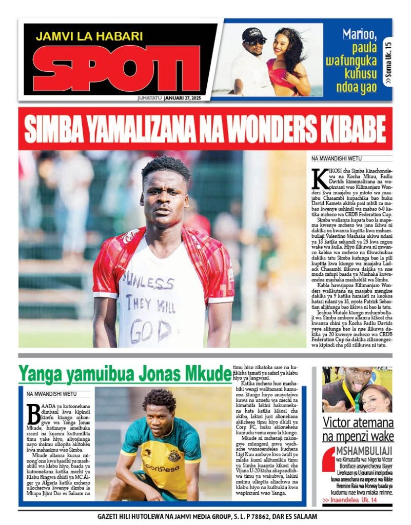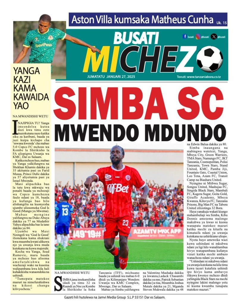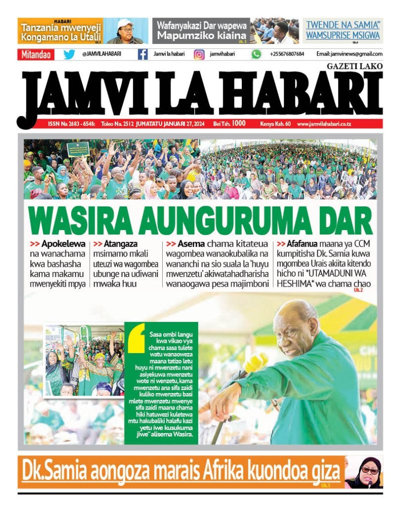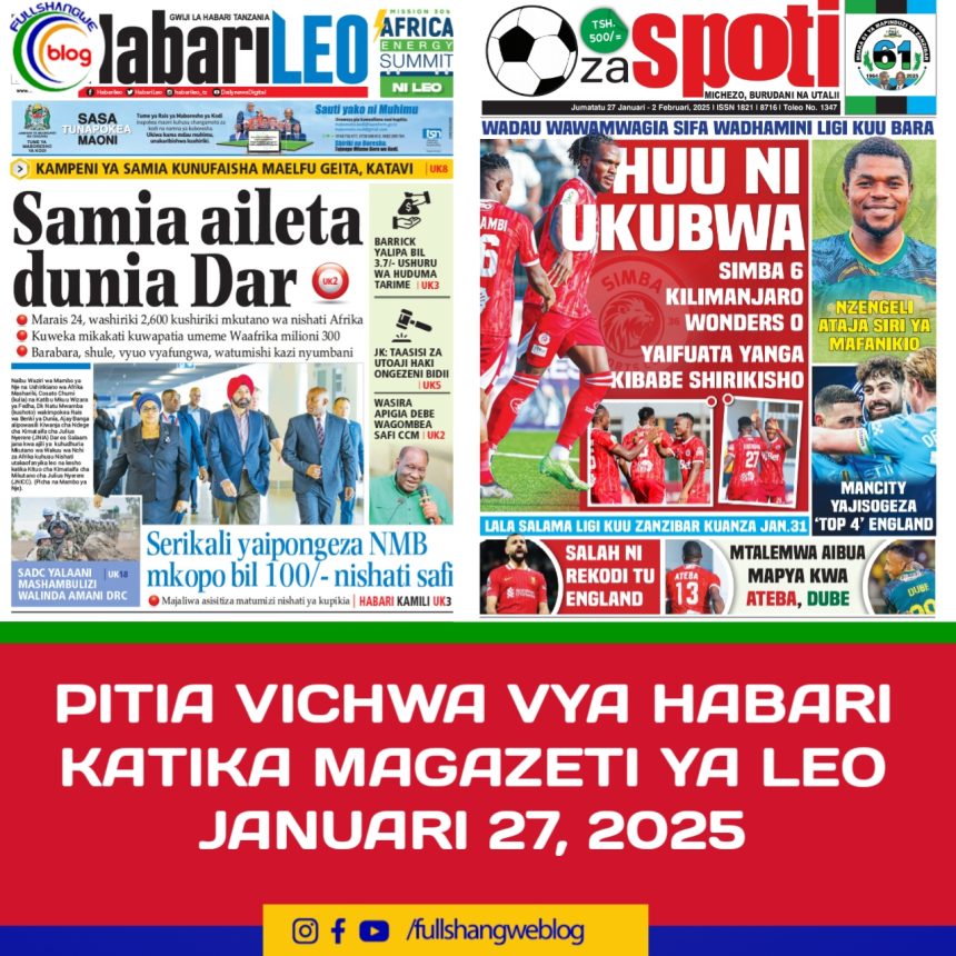 MagazetiPITIA VICHWA VYA HABARI KATIKA MAGAZETI YA LEO JANUARI 27, 2025 Last updated: 2025/01/27 at 12:20 AM John Bukuku 11 months ago Share SHARE John Bukuku January 27, 2025 January 26, 2025 Share this Article Facebook Twitter Email Print Previous Article WAZIRI MKUU ASISITIZA MATUMIZI YA NISHATI SAFI KWA WATANZANIA WOTE Next Article RAIS BOLA TIDUBU WA NIGERIA AWASILI NCHINI TANZANIA