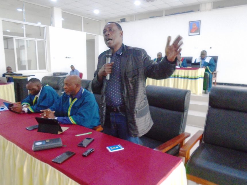 Katibu wa CCM ilaya ya Ilemela, Hassan Millanga, akisisitiza jambo katika kikao cha Baraza la Madiwani wa Manispaa ya Ilemela, leo.