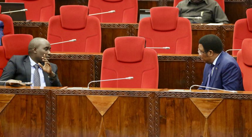 Waziri Mkuu Kassim Majaliwa akizungumza na Waziri wa Nchi Ofisi ya Rais, TAMISEMI, Mohamed mchengerwa, Bungeni Jijini Dodoma Januari 31, 2025.