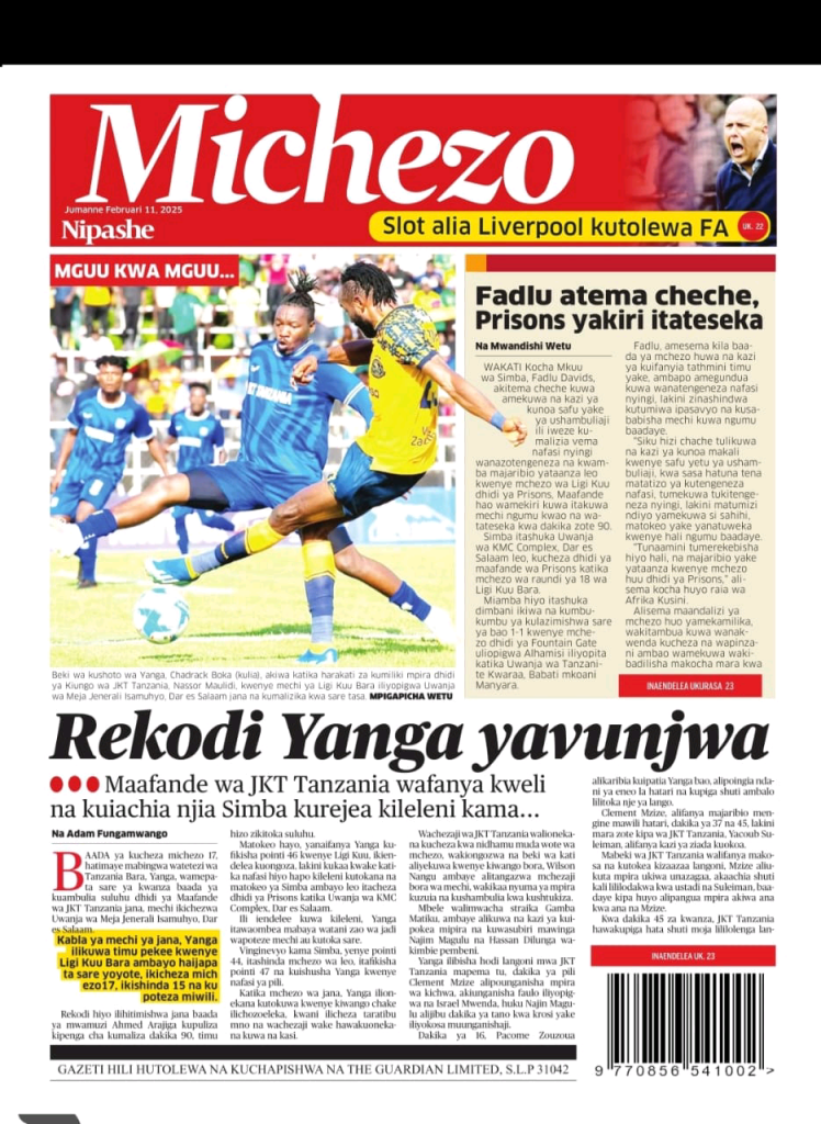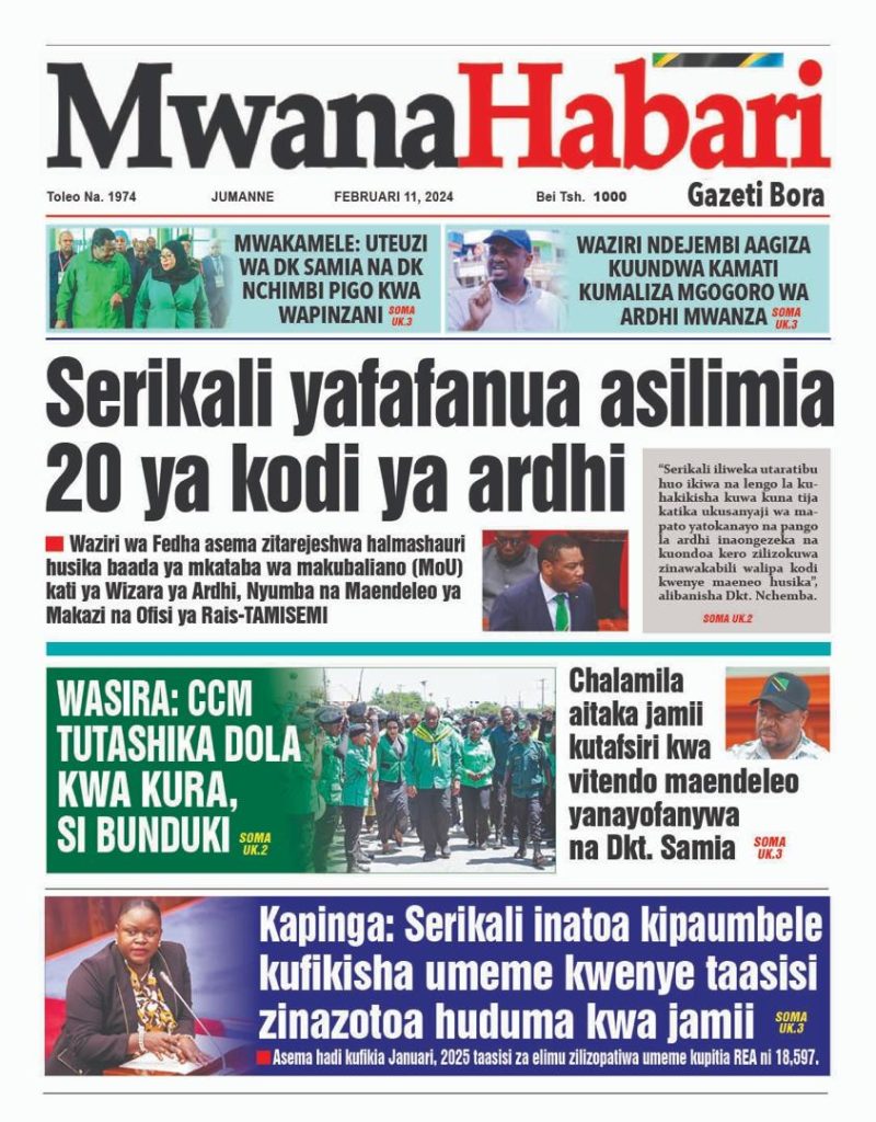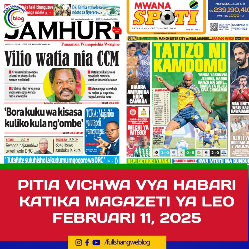MagazetiPITIA VICHWA VYA HABARI KATIKA MAGAZETI YA LEO FEBRUARI 11, 2025 Last updated: 2025/02/11 at 3:02 AM John Bukuku 9 months ago Share SHARE John Bukuku February 11, 2025 February 10, 2025 Share this Article Facebook Twitter Email Print Previous Article MAKAMU WA RAIS ASHIRIKI MKUTANO WA NEPAD Next Article SAMIA TEACHERS MOBILE CLINIC YAPAMBA MOTO