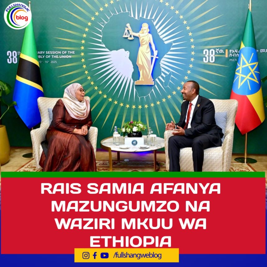 Rais Mhe. Dkt. Samia Suluhu Hassan akutana na kuzungumza na Waziri Mkuu wa Ethiopia Mhe. Abiy Ahmed kando ya Mkutano wa Kawaida wa 38 wa Wakuu wa Nchi na Serikali wa Umoja wa Afrika (AU), Addis Ababa nchini Ethiopia