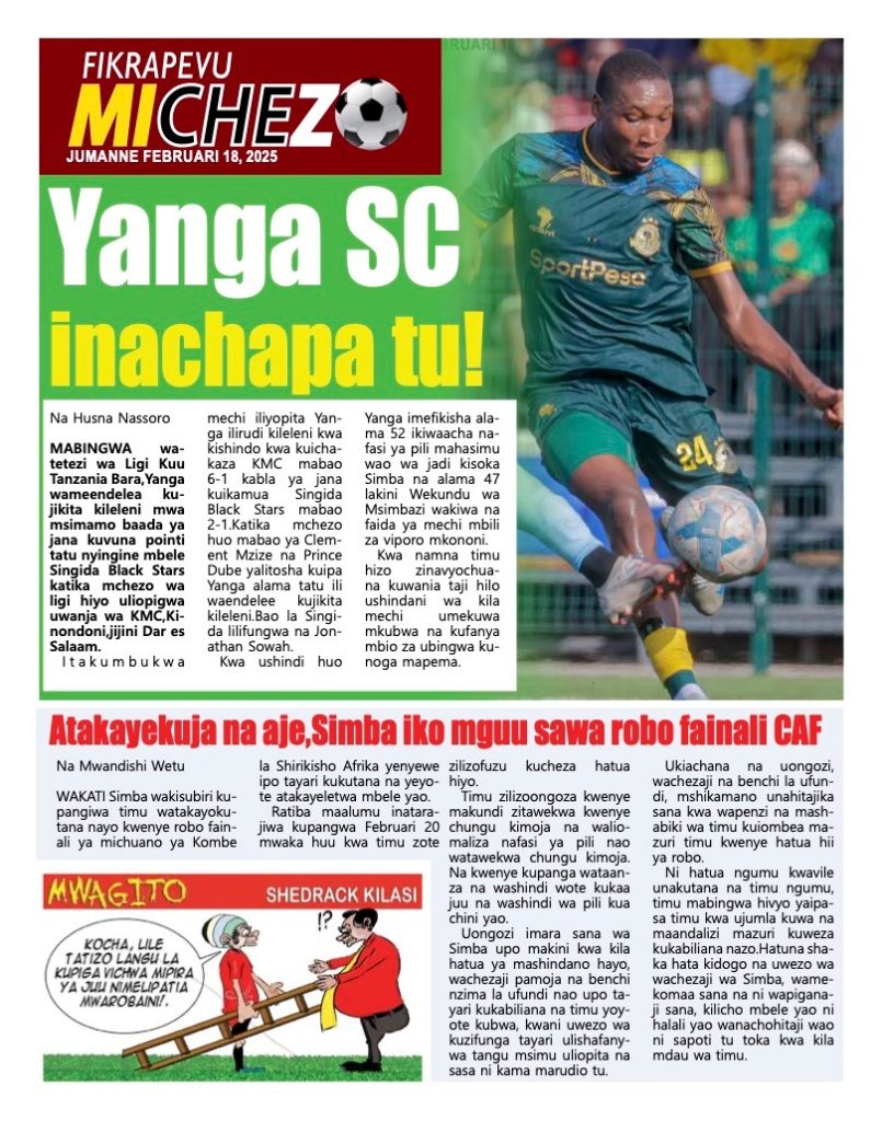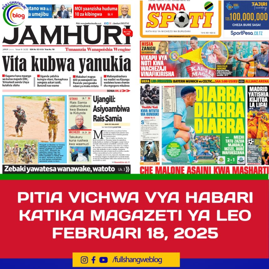 MagazetiPITIA VICHWA VYA HABARI KATIKA MAGAZETI YA LEO FEBRUARI 18, 2025 Last updated: 2025/02/18 at 3:42 AM John Bukuku 9 months ago Share SHARE John Bukuku February 18, 2025 February 17, 2025 Share this Article Facebook Twitter Email Print Previous Article TRILIONI 8.2 ZATUMIKA KUKOPESHA WANAFUNZI KATIKA KIPINDI CHA MIAKA 20-MAJALIWA. Next Article MWENYEKITI WA ZEC JAJI KAZI ATAKA WANANCHI WALIOFIKA UMRI WA KUPIGA KURA KUJIANDIKISHA