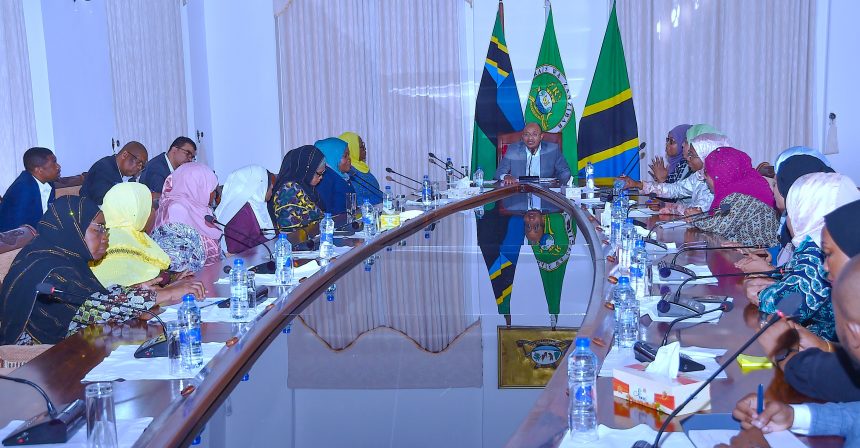 RAIS wa Zanzibar na Mwenyekiti wa Baraza la Mapinduzi Mhe.Dk.Hussein Ali Mwinyi akizungumza na Ujumbe wa Umoja wa Wawakilishi Wanawake Zanzibar (UWAWAZA) ukiongozwa na Mwenyekiti wake Mhe.Dkt.Saada Mkuya Salum (kushoto kwa Rais) na (kulia kwa Rais) Naibu Spika wa Baraza la Wawakilishi Zanzibar Mhe.Mgeni Hassan Juma, mazungumzo hayo yaliyofanyika leo 17-2-2025 katika ukumbi wa Ikulu Jijini Zanzibar.(Picha na Ikulu)