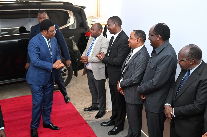 Waziri Mkuu, Kassim Majaliwa akisalimiana na viongozi alipowasili kwenye Kituo cha Mikutano cha Kimataifa cha Julius Nyerere jijini Dar es salaam kumuwakilisha Rais Dkt. Samia Suluhu Hassan katika Kilele cha Maadhimisho ya Miaka 20 ya Bodi ya Mikopo ya Wanafunzi wa Elimu ya Juu, Februari 17, 2025. Kutoka kushoto ni Mkuu wa Mkoa wa Dar es salaam Albert Chalamila, Waziri wa Elimu Sayansi na Teknoloji, Profesa Adolf Mkenda, Naibu Waziri wa Elimu, Sayansi na Teknolojia, Omary Kipanga, Kaimu Katibu Mkuu Wizara ya Elimu, Sayansi na Teknolojia, Profesa Daniel Mushi, na kulia ni Mwenyekiti wa Bodi ya Mikopo ya Wanafunzi wa Elimu ya Juu Tanzania , Profesa Hamisi Dihenga. (Picha na Ofisi ya Waziri Mkuu)