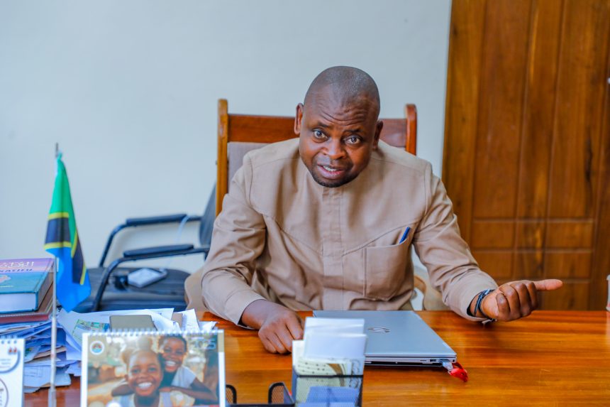 Mkurugenzi Mtendaji wa Halmashauri ya Wilaya ya Siha mkoani Kilimanjaro, Bw. Haji Mnasi, akizungumza na Timu ya Wataalamu kutoka Wizara ya Fedha na Taasisi za Fedha (hawaonekani pichani) wakiwa ofisini kwake kabla ya kuanza kutoa Elimu ya Fedha kwa Watumishi wa Halmashauri hiyo.