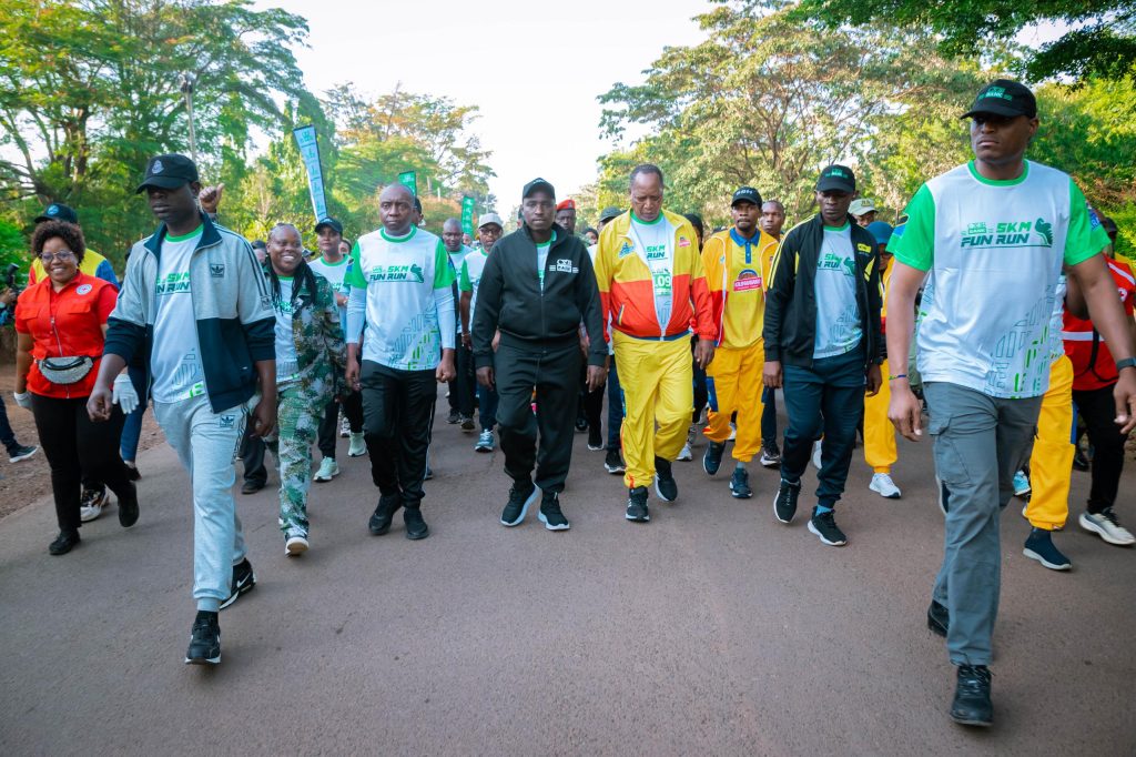 Dkt. Biteko akiambatana na Waziri wa Habari, Utamaduni, Sanaa na michezo, Mhe. Prof. Palamagamba Kabudi, Mkuu wa Kitengo cha Masoko, Bi Joseline Kamuhanda pamoja na Viongozi mbalimbali wanashiriki mbio fupi za KM 5 Fun Run.