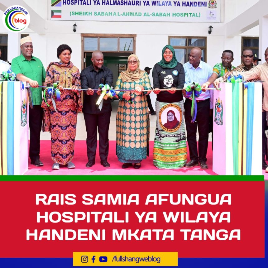 Rais wa Jamhuri ya Muungano wa Tanzania Mhe. Dkt. Samia Suluhu Hassan akivuta kitambaa kuashiria ufunguzi wa Hospitali ya Halmashauri ya wilaya ya Handeni iliyopo Mkata mkoani Tanga tarehe 23 Februari, 2025.