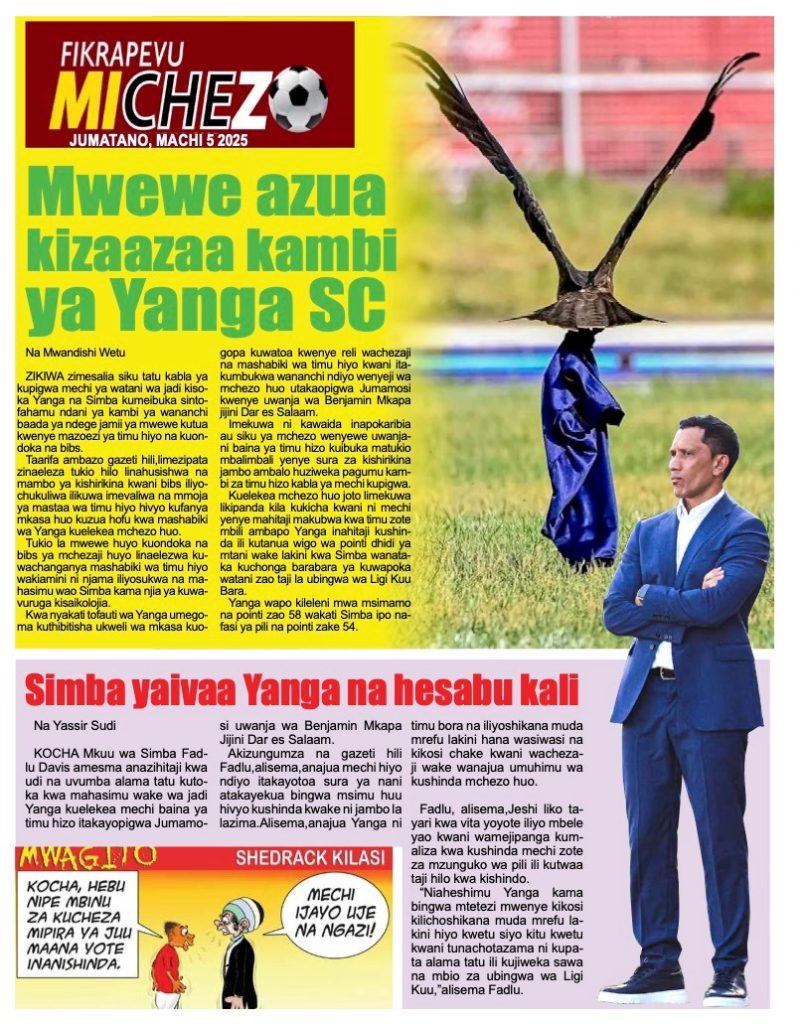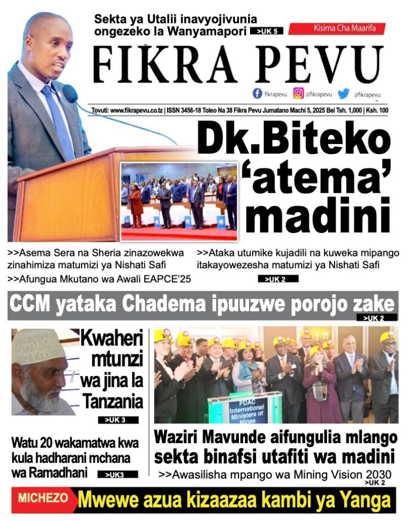MagazetiPITIA VICHWA VYA HABARI KATIKA MAGAZETI YA LEO MACHI 05, 2025 Last updated: 2025/03/05 at 12:12 AM John Bukuku 11 months ago Share SHARE John Bukuku March 5, 2025 March 5, 2025 Share this Article Facebook Twitter Email Print Previous Article HUDUMA JUMUISHI ZA KIFEDHA NI KIUNGO MUHIMU CHA UKUAJI UCHUMI – MAJALIWA Next Article RAIS WA BUNGE LA CUBA AWASILI NCHINI TANZANIA