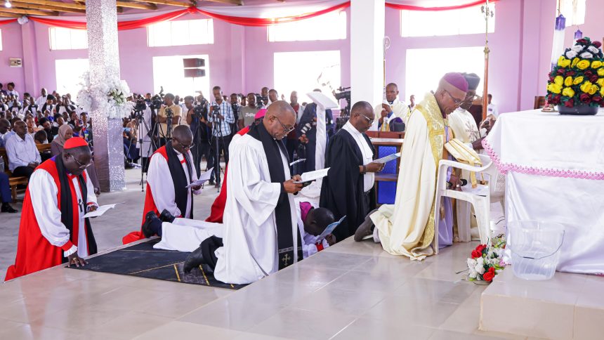 Askofu Bethuel Mlula, akiwekwa wakfu na kutawazwa kua Askofu wa Pili wa Kanisa la Anglikana Dayosisi ya Kiteto, katika ibada iliyofanyika kwenye Kanisa Kuu la Anglikana la Mtakatifu Mikaeli, Kiteto Mkoani Manyara, Machi 3, 2025. Waziri Mkuu Kassim Majaliwa alimwakilisha Mheshimiwa Rais Dkt. Samia Suluhu Hassan katika ibada hiyo. (Picha na Ofisi ya Waziri Mkuu).