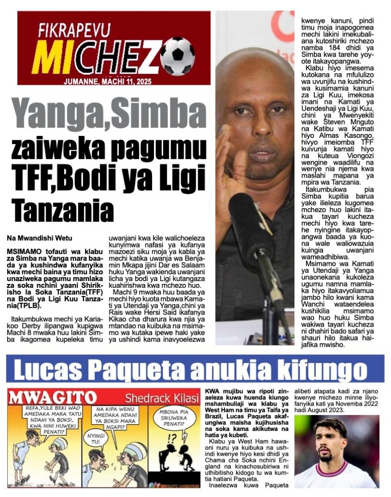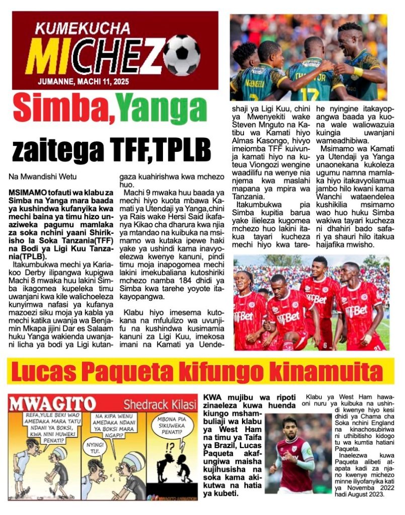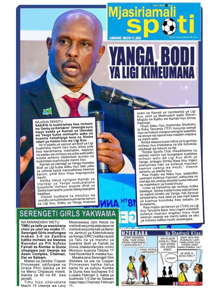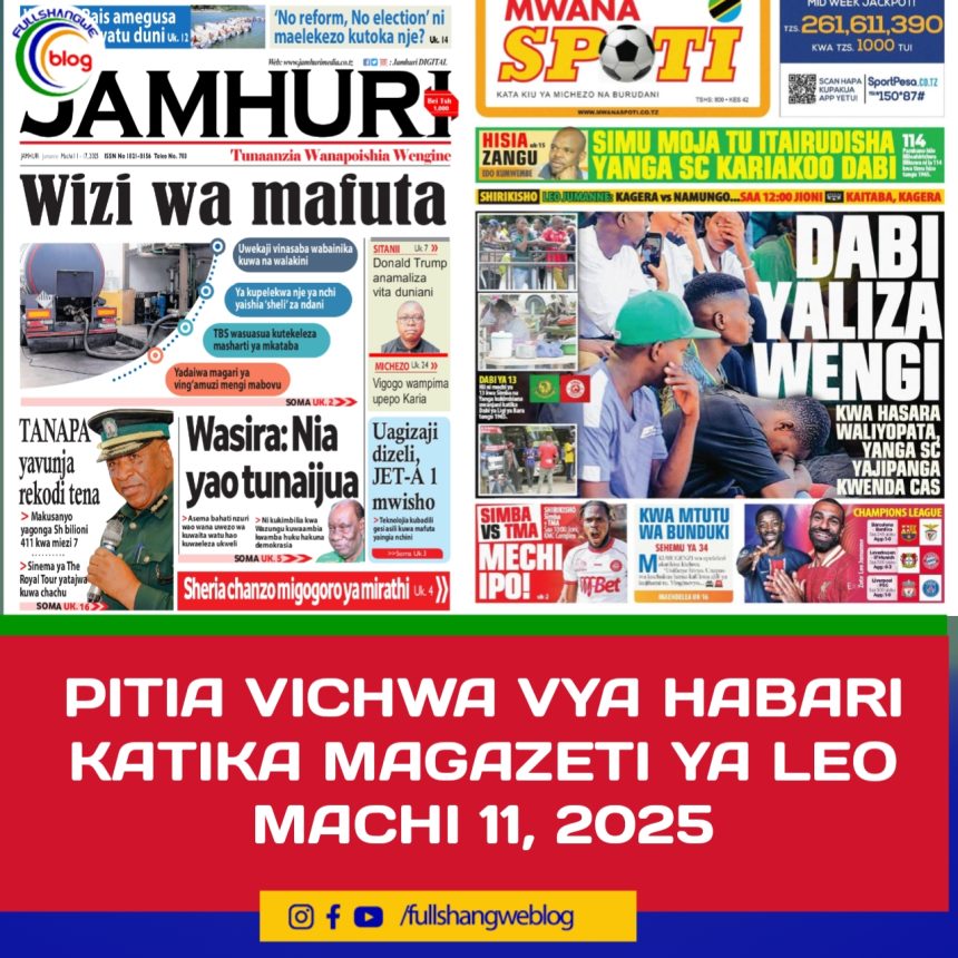 MagazetiPITIA VICHWA VYA HABARI KATIKA MAGAZETI YA LEO MACHI 11, 2025 Last updated: 2025/03/10 at 10:51 PM John Bukuku 8 months ago Share SHARE John Bukuku March 10, 2025 March 10, 2025 Share this Article Facebook Twitter Email Print Previous Article MKUU WA WILAYA YA DODOMA ATOA ANGALIZO MATUMIZI YA ‘INTERNET’ VIWANDANI SEKONDARI Next Article SIMBA SC YAENDELEA KUPANUA MIPAKA KIMATAIFA