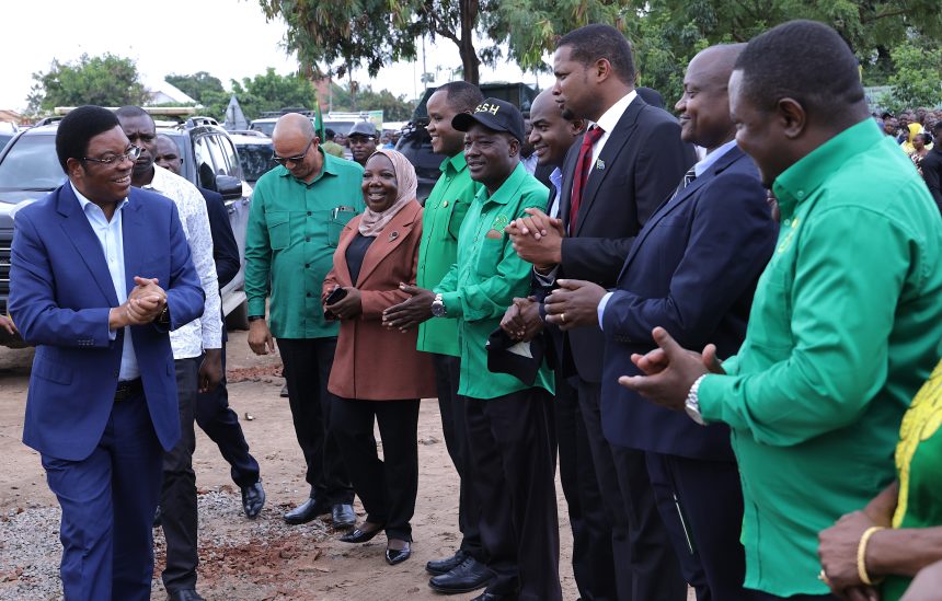 Waziri Mkuu, Kassim Majaliwa akizungumza na wananchi baada ya kukagua ujenzi wa vibanda vya biashara vinavyojengwa na halmashauri ya wilaya ya Igunga katika eneo la soko jipya la Igunga mkoani Tabora, Machi 12, 2025. (Picha na Ofisi ya Waziri Mkuu)