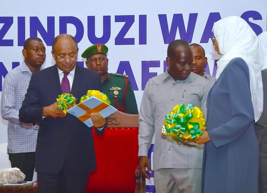 RAIS wa Zanzibar na Mwenyekiti wa Baraza la Mapinduzi Mhe.Dk.Hussein Ali Mwinyi akizindua Sera ya Maji na Usafi wa Mazingira 2025, uzinduzi huo uliyofanyika leo 22-3-2025 katika ukumbi wa Hoteli ya Golden Tulip Zanzibar Uwanja wa Ndege Kiembesamaki Wilaya ya Magharibi “B” Unguja .(Picha na Ikulu).