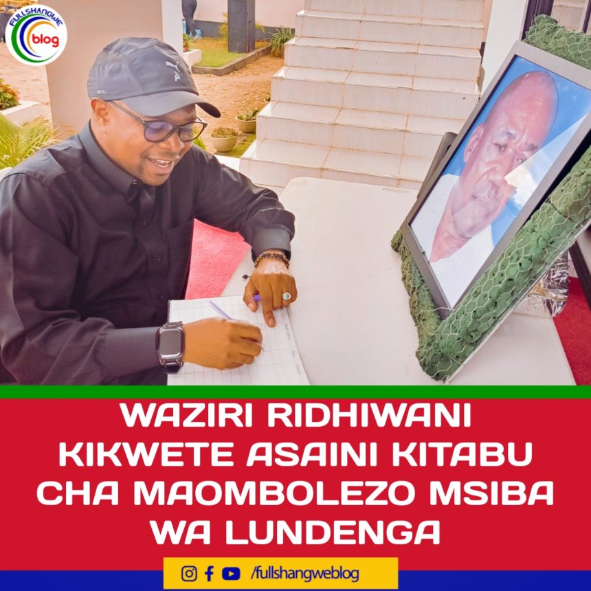 Mhe. Ridhiwani Jakaya Kikwete Waziri wa Nchi Ofisi ya Waziri Mkuu (Kazi, Vijana, Ajira na Wenye Ulemavu) akisaini kitabu cha maombolezo katika msiba wa aliyekuwa Mkurugenzi wa Kamati ya Miss Tanzania miaka mingi Marehemu Hashim Lundenga ambaye alifariki Aprili 19, 2025 katika hospitali ya Kitemgule Tegeta jijini Dar es Salaam.