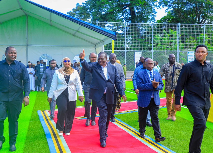 Makamu wa Rais wa Jamhuri ya Muungano wa Tanzania Mhe. Dkt. Philip Mpango akiwasili katika Uwanja wa Michezo wa Priz uliopo Kilimani Unguja – Zanzibar kwaajili ya uwekaji wa Jiwe la Msingi Ujenzi wa Viwanja vya Michezo vya Priz leo tarehe 24 Aprili 2025.