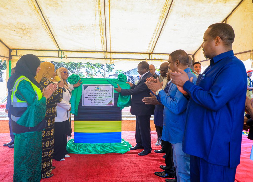 Makamu wa Rais wa Jamhuri ya Muungano wa Tanzania Mhe. Dkt. Philip Mpango akihutubia wakati wa uwekaji wa Jiwe la Msingi Ujenzi wa Viwanja vya Michezo vya Priz katika eneo la Kilimani Unguja Zanzibar leo tarehe 24 Aprili 2025.