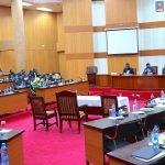 Waziri wa Fedha, Mhe. Dkt. Mwigulu Lameck Nchemba (Mb)(Katikati), Katibu Mkuu Wizara ya Fedha, Dkt. Natu EI-Maamry Mwamba (kulia) na Kamishna Mkuu wa Mamlaka ya Mapato Tanzania-TRA, Bw. Yusuf Mwenda (kushoto), wakiimba wimbo wa Jumuiya ya Afrika Mashariki kabla ya kuanza kwa Mkutano wa 17 wa Baraza la Kisekta la Mawaziri wanaosimamia masuala ya fedha na uchumi la Jumuiya ya Afrika Mashariki (17th SCFEA), uliotanyika Makao Makuu ya Jumuiya hiyo Jijini Arusha, ambapo Katika Mkutano huo Ukt. Nchemba alihimiza nchi wanachama kuimarisha zaidi utengamano wa kikanda ili kuharakisha maendeleo ya nchi hizo. (Picha na Kitengo cha Mawasiliano Serikalini, WF, Arusha)