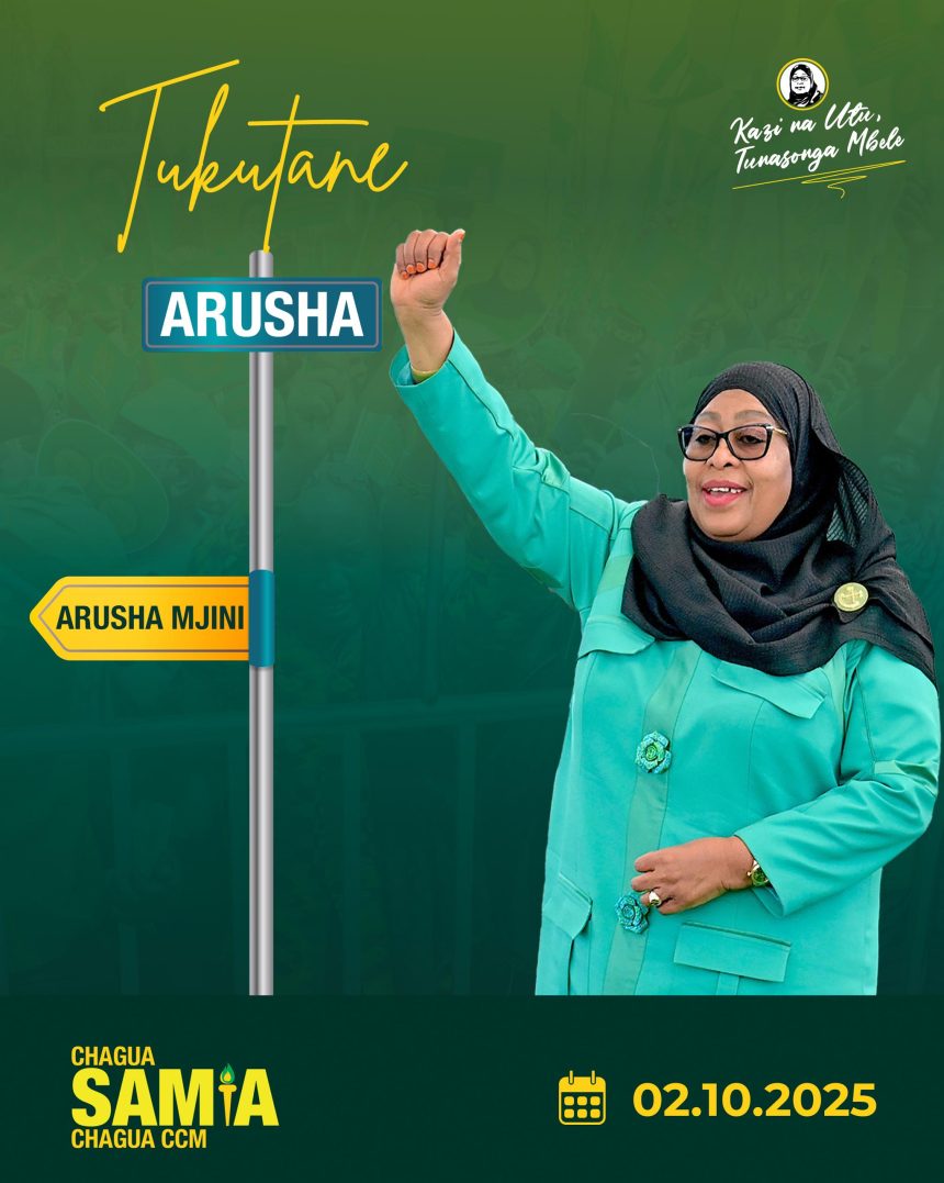 Mgombea Urais wa Chama Cha Mapinduzi (CCM) na Rais wa Jamhuri ya Muungano wa Tanzania, Dkt. Samia Suluhu Hassan, anatarajiwa kuunguruma leo jijini Arusha katika mkutano mkubwa wa kampeni za Uchaguzi Mkuu wa Oktoba 29, 2025.