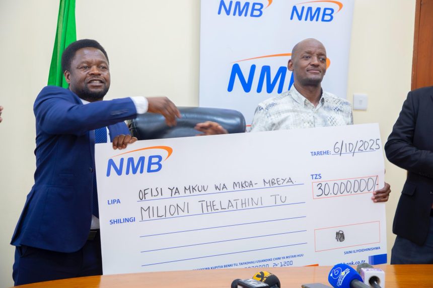 BENKI ya NMB, imeikabidhi ofisi ya Mkoa wa Mbeya hundi ya Sh. Milioni 30 kwa ajili ya udhamini wa maadhimisho ya wiki ya vijana kitaifa na sherehe za kitaifa za kuzima Mwenge wa Uhuru zitakazofanyika Oktoba 14 mwaka huu jijini Mbeya.