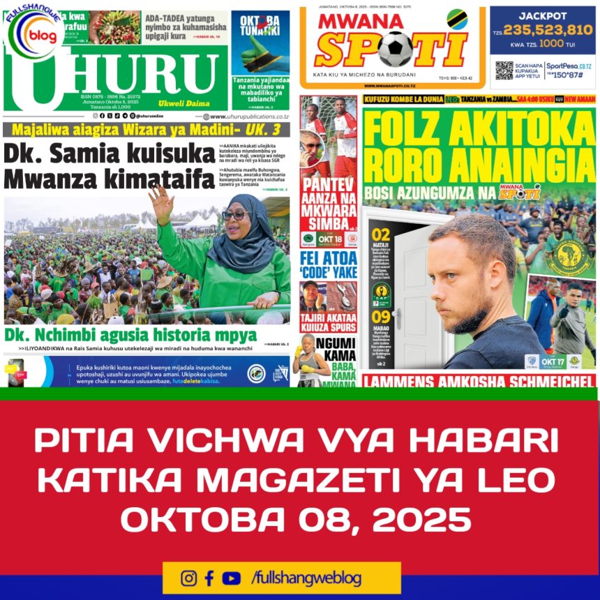 MagazetiPITIA VICHWA VYA HABARI KATIKA MAGAZETI YA LEO OKTOBA 08, 2025 Last updated: 2025/10/08 at 3:16 AM John Bukuku 1 month ago Share SHARE John Bukuku October 8, 2025 October 7, 2025 Share this Article Facebook Twitter Email Print Previous Article ASHIKILIWA KWA TUHUMA ZA KUMUUA MAMA YAKE WA KAMBO Next Article WAKILI MWANAISHA MNDEME AENDELEA NA KAMPENI YA MTAA KWA MTAA KIGAMBONI