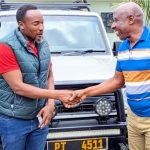 Kiongozi mstaafu wa ACT Wazalendo, Zitto Kabwe akimuombea kura mgombea wa jimbo la Kakonko wa chama hicho, Olaf Kaboboye wakati wa kampeni yake iliyofanyika katika kijiji cha Marenga kata ya Lugenge mkoani Kigoma,Oktoba 06, 2025.