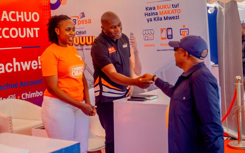 Waziri wa Nchi Ofisi ya Waziri Mkuu Kazi Vijana Ajira na Wenye Ulemavu Ridhiwani Kikwete akisalimiana na Meneja Mahusiano Idara ya Wateja Binafsi – Luiana Keenja, alipotembelea Banda la NMB kwenye Maadhimisho ya wiki ya Vijana katika viwanja vya Soko la Uhindini jijini Mbeya katikati ni Meneja Mauzo Kanda Nyanda za Juu Ungandeka Mwakatage.