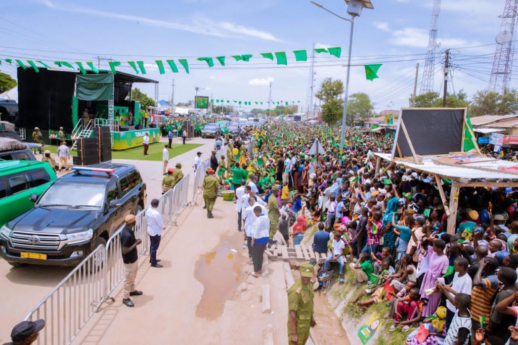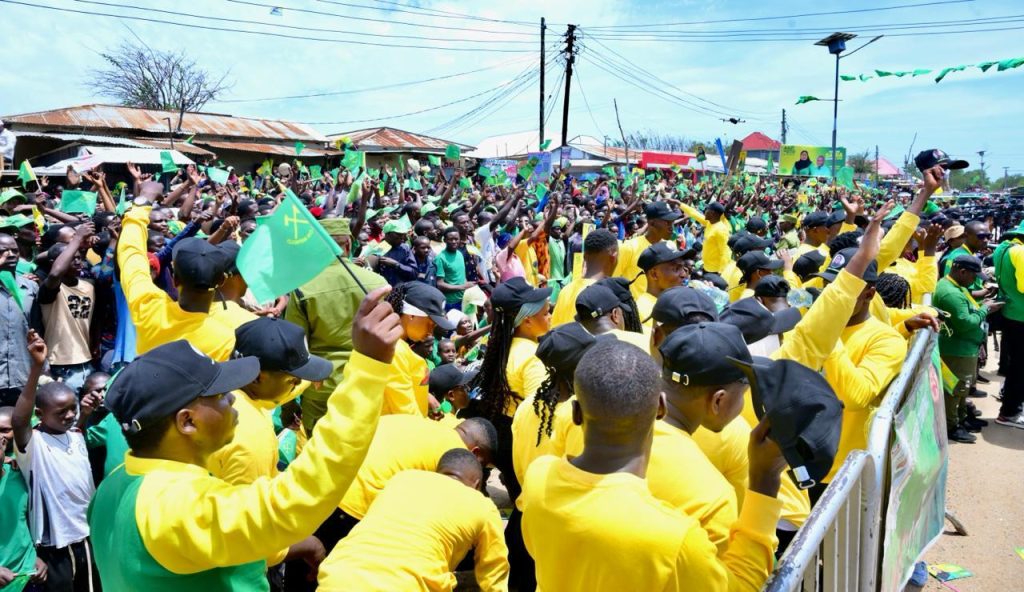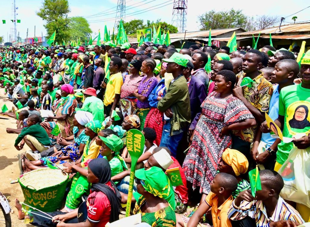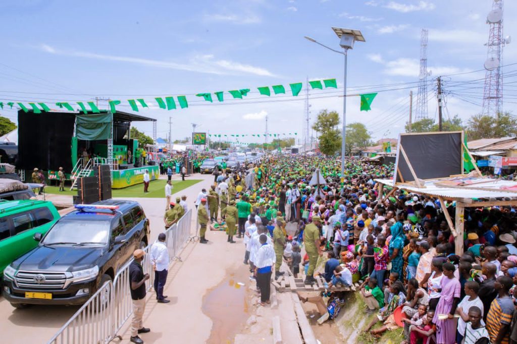 Sehemu ya Wananchi wa Lamadi, Busega mkoani Simiyu waliohudhuria mkutano wa hadhara wa Kampeni wa Mgombea wa nafasi ya Rais wa Jamhuri ya Muungano wa Tanzania na Mwenyekiti wa Chama cha Mapinduzi (CCM) Taifa Ndugu Dkt. Samia Suluhu Hassan, tarehe 09 Oktoba, 2025.