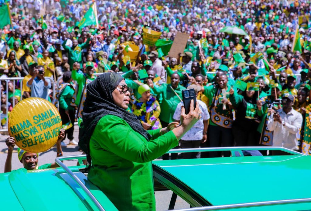 Mgombea wa nafasi ya Rais wa Jamhuri ya Muungano wa Tanzania na Mwenyekiti wa Chama cha Mapinduzi (CCM) Taifa Ndugu Dkt. Samia Suluhu Hassan akizungumza na wananchi wa Maswa katika muendelezo wa Kampeni za Uchaguzi kwa CCM, mkoani Simiyu tarehe11 Oktoba, 2025.