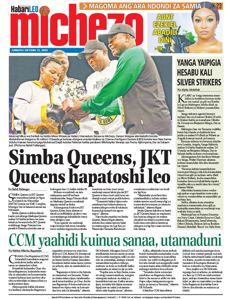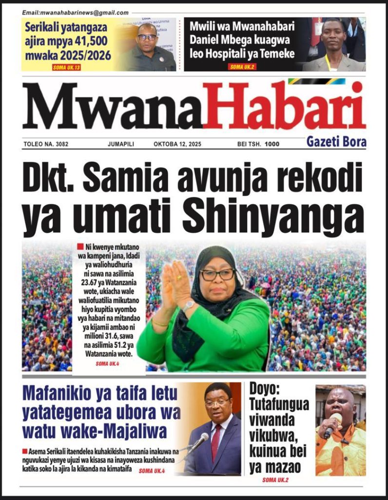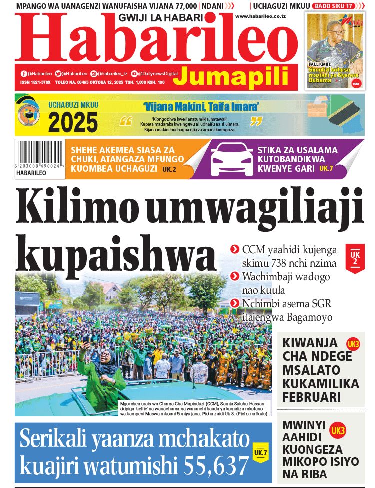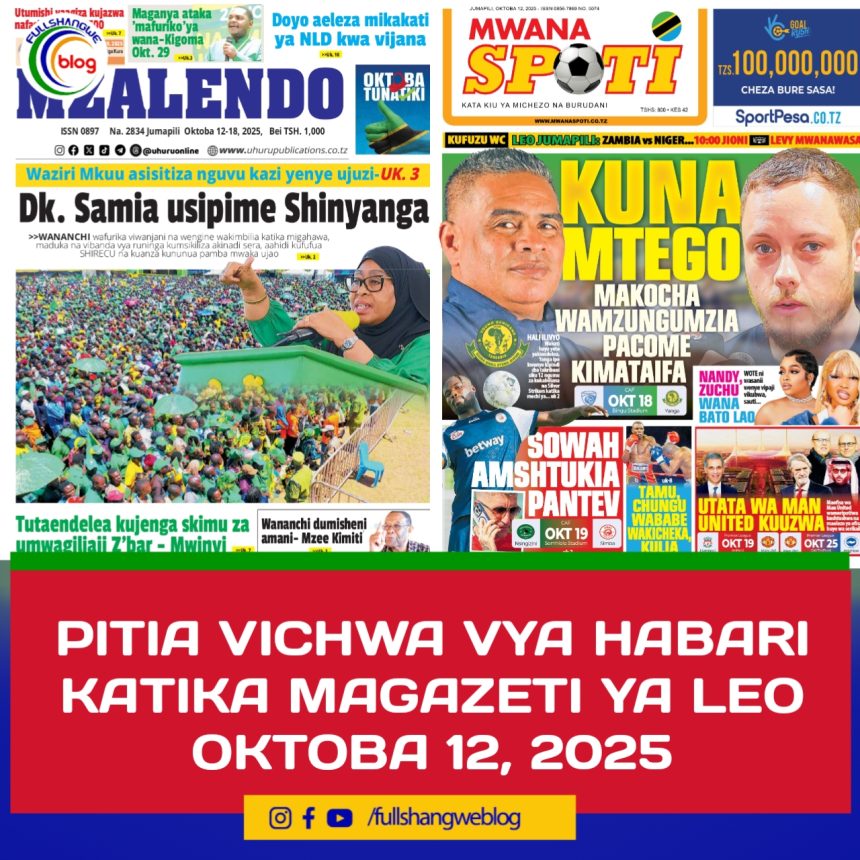 MagazetiPITIA VICHWA VYA HABARI KATIKA MAGAZETI YA LEO OKTOBA 12, 2025 Last updated: 2025/10/12 at 2:31 AM John Bukuku 1 month ago Share SHARE John Bukuku October 12, 2025 October 11, 2025 Share this Article Facebook Twitter Email Print Previous Article UJENZI WA VIWANDA BUZWAGI KUKUZA UCHUMI WA KAHAMA – MAVUNDE Next Article PUMA ENERGY TANZANIA WAADHIMISHA WIKI YA HUDUMA KWA WATEJA KWA KUTOA HUDUMA ZA ZIADA KWENYE VITUO MBALIMBALI NCHINI