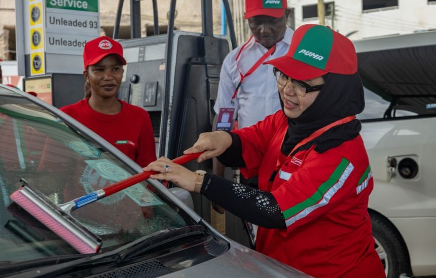 Mkurugenzi Mtendaji wa Puma Energy Tanzania, Bi. Fatma Abdallah akiweka oil kwenye gari la mmojawapo wa wateja waliofika kituoni kupatiwa huduma ikiwa ni sehemu ya kusherehekea wiki ya huduma kwa wateja ambapo kwa mwaka 2025 inasherehekewa Oktoba 6-10 duniani kote, ikibeba kauli mbiu ya ‘INAWEZEKANA’. Uongozi na wafanyakazi wa kampuni hiyo walijumuika katika vituo mbalimbali kukutana na wateja wao na kuwashukuru kwa kuendelea kuchagua na kutumia bidhaa na huduma zao nchini kote.