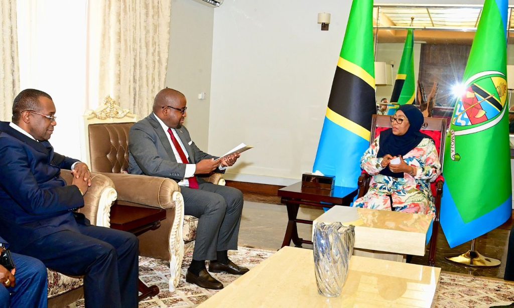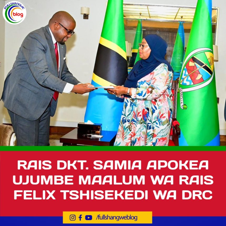 Rais wa Jamhuri ya Muungano wa Tanzania, Mhe. Dkt. Samia Suluhu Hassan akipokea Ujumbe Maalum wa Rais wa Jamhuri ya Congo (DRC) Mhe. Felix Antoine Tshisekedi, uliowasilishwa kwake na Mjumbe Maalum na Waziri wa Ushirikiano wa Kikanda wa nchi hiyo, Mhe. Floribert Anzuluni, Ikulu Jijini Dar es Salaam, tarehe 24 Oktoba, 2025.