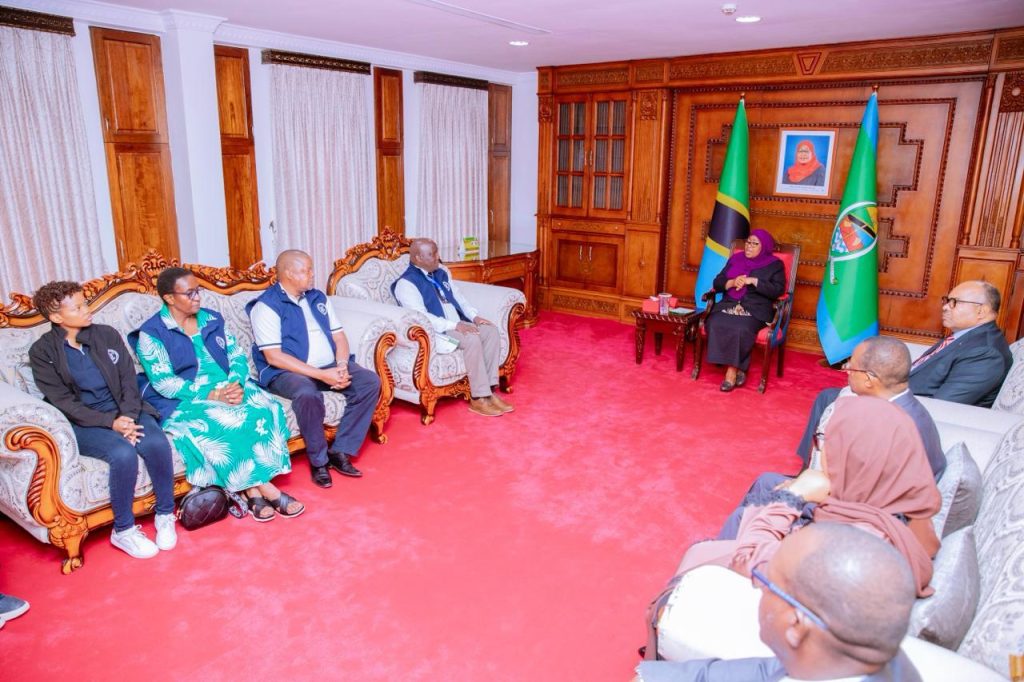 Rais wa Jamhuri ya Muungano wa Tanzania Mheshimiwa Dkt. Samia Suluhu Hassan akzungumza na ujumbe wa Misheni ya Uangalizi wa Uchaguzi ya Jumuiya ya Maendeleo Kusini mwa Afrika (SEOM) ulioongozwa na Spika Mstaafu wa Bunge la Malawi, Bw. Richard Msowoya, Ikulu ndogo ya Tunguu, Zanzibar, tarehe 26 Oktoba, 2025.