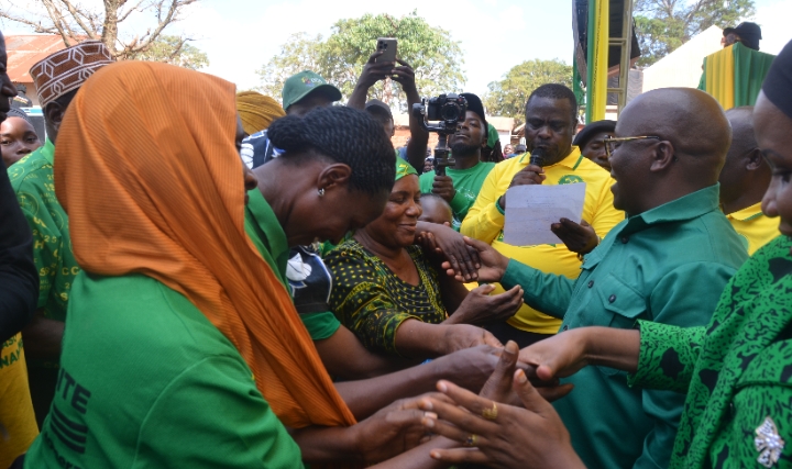 Baadhi ya Wanachama wa Chama cha Mapinduzi wa Wilaya ya Namtumbo,wakimpongeza Mbunge Mteule wa Jimbo la Namtumbo Juma Zuber Homera kulia.