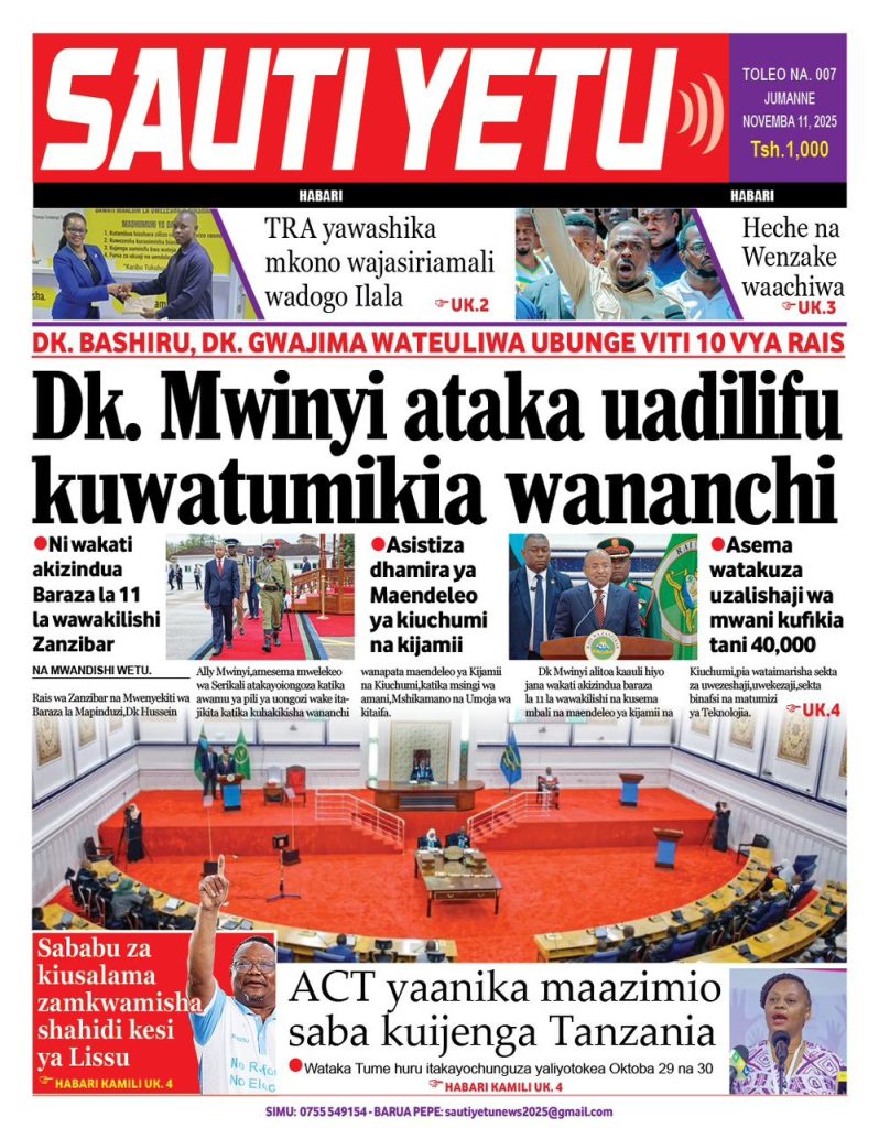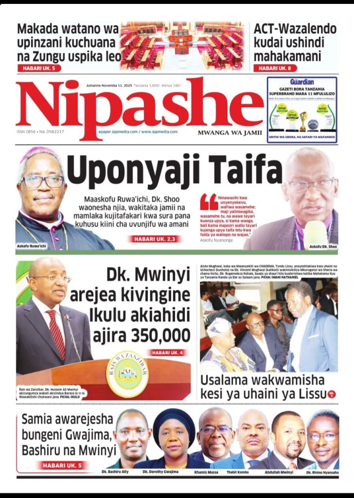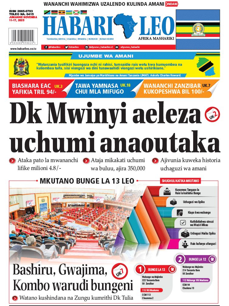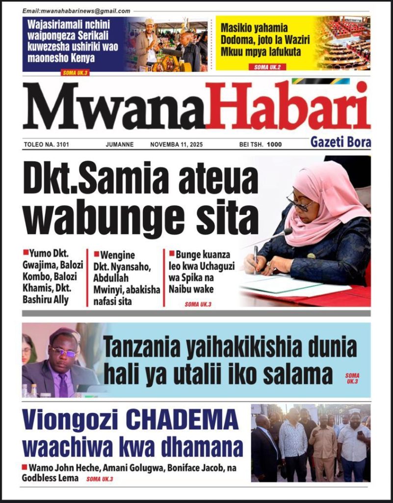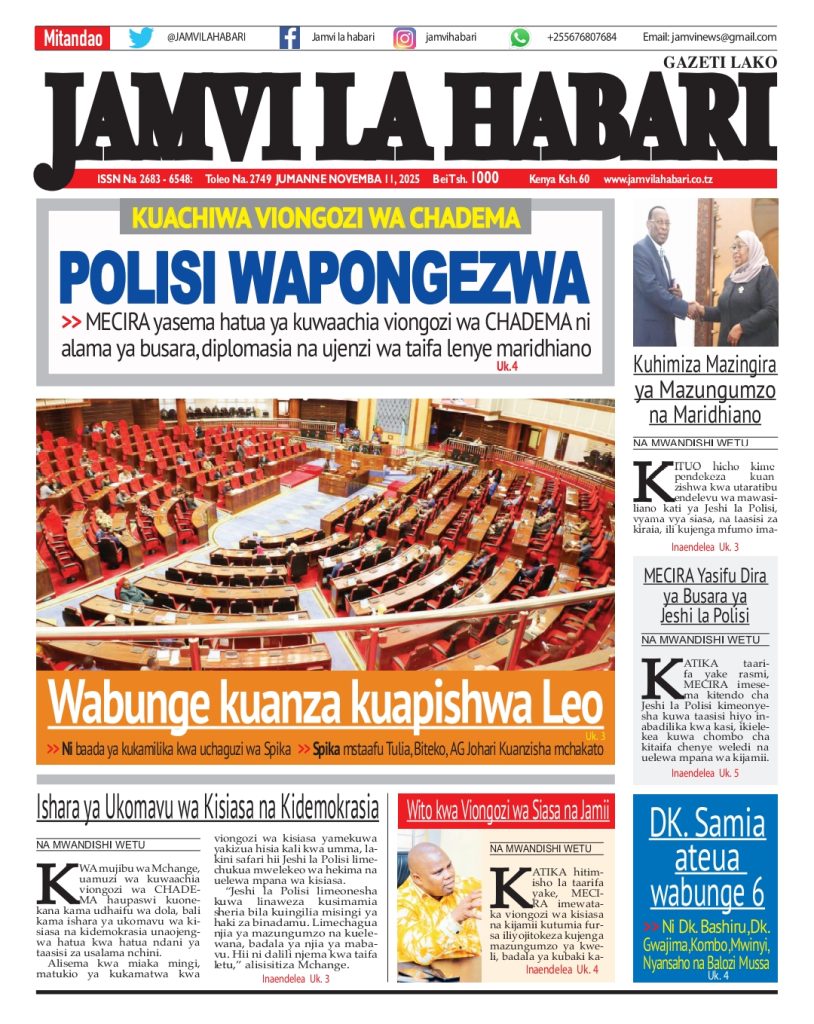 MagazetiPITIA VICHWA VYA HABARI KATIKA MAGAZETI YA LEO NOBEMBA 11, 2025 Last updated: 2025/11/10 at 11:49 PM John Bukuku 28 seconds ago Share SHARE John Bukuku November 10, 2025 November 10, 2025 Share this Article Facebook Twitter Email Print Previous Article TAJU YATOA WITO WA KULINDA AMANI NA KUENDELEZA UZALENDO NCHINI