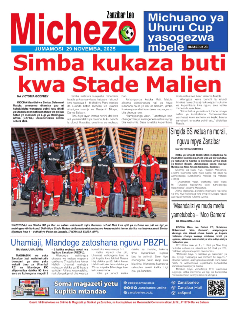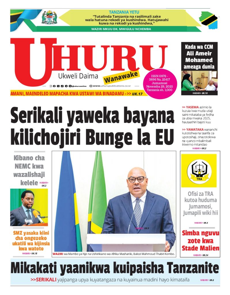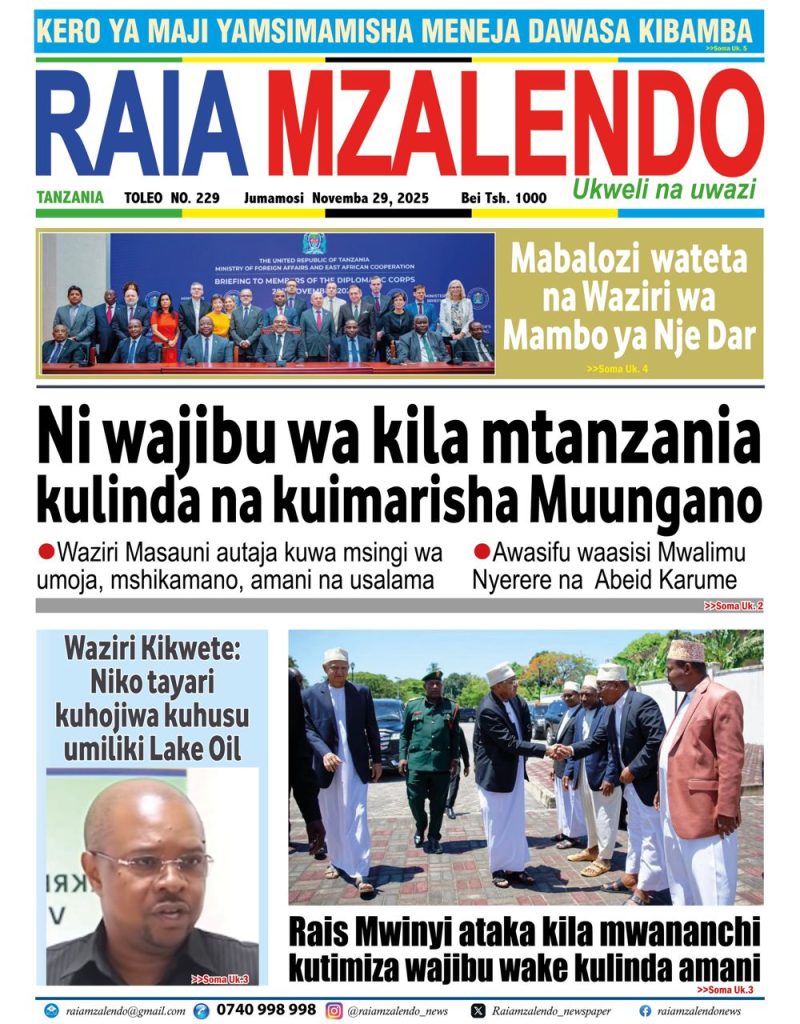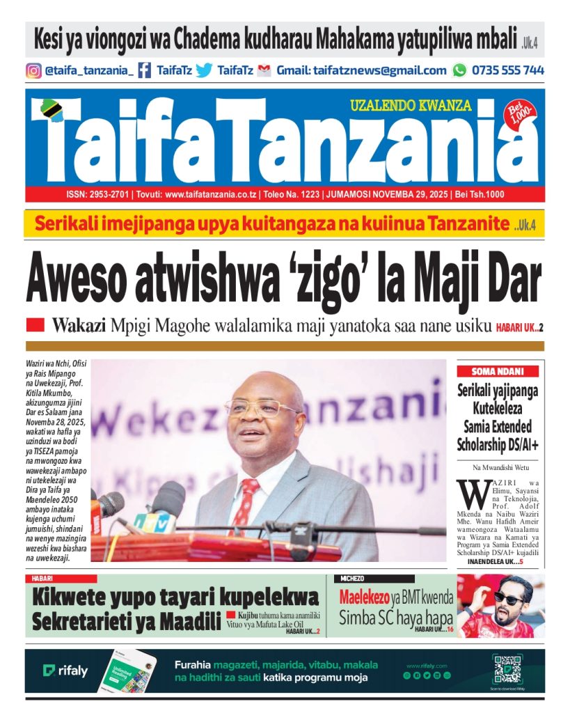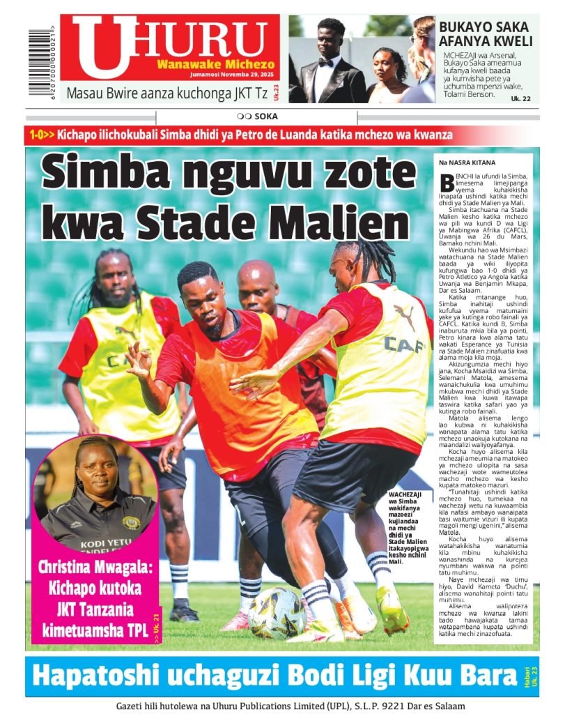 MagazetiPITIA VICHWA VYA HABARI KATIKA MAGAZETI YA LEO NOVEMBA 29, 2025 Last updated: 2025/11/28 at 10:49 PM John Bukuku 22 minutes ago Share SHARE John Bukuku November 28, 2025 November 28, 2025 Share this Article Facebook Twitter Email Print Previous Article YANGA YAENDELEA KUJIWEKA VIZURI KUNDI B MICHUANO YA CAF Next Article SERIKALI YATANGAZA MIKAKATI 8 KUVUTIA UWEKEZAJI, KUONGEZA AJIRA KWA VIJANA