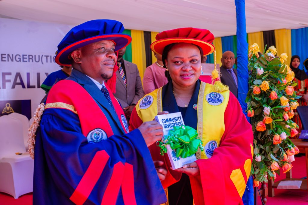 Kwa niaba ya wahitimu wote Mhitimu aliyefanya vizuri kwa mwaka 2024/2025 Rehema Fisso, wa Shahada ya Awali ya Jinsia na Maendeleo ya Jamii amewashukuru wahadhiri na walezi wa Taasisi ya Maendeleo ya Jamii Tengeru kwa kuwalea vizuri katika maadili ambayo yatawapa nafasi ya kuishi maisha ya nidhamu wakiwa kazini na katika majukumu mengine ya maisha.