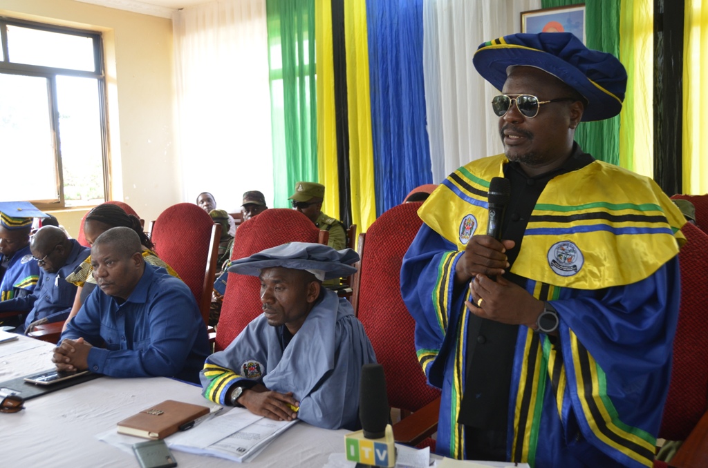 Mkuu wa Wilaya ya Namtumbo Mkoani Ruvuma Ngollo Malenya,akizungumza kwenye kikao cha Baraza la madiwani wa Halmashauri ya Namtumbo,kulia Mkuu wa Mkoa wa Ruvuma Ahmed Abbas na kushoto Mwenyekiti wa CCM Mkoa wa Ruvuma Oddo Mwisho.